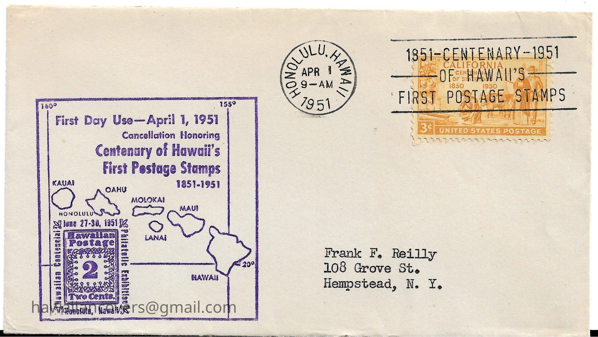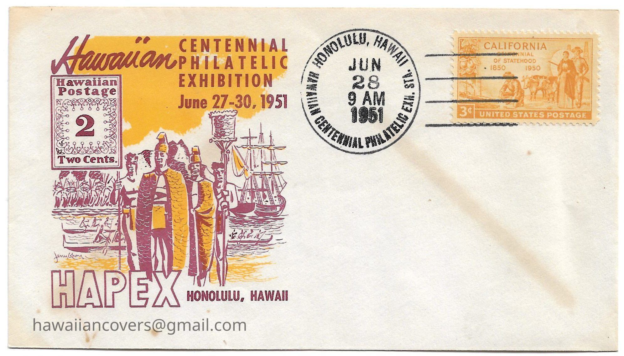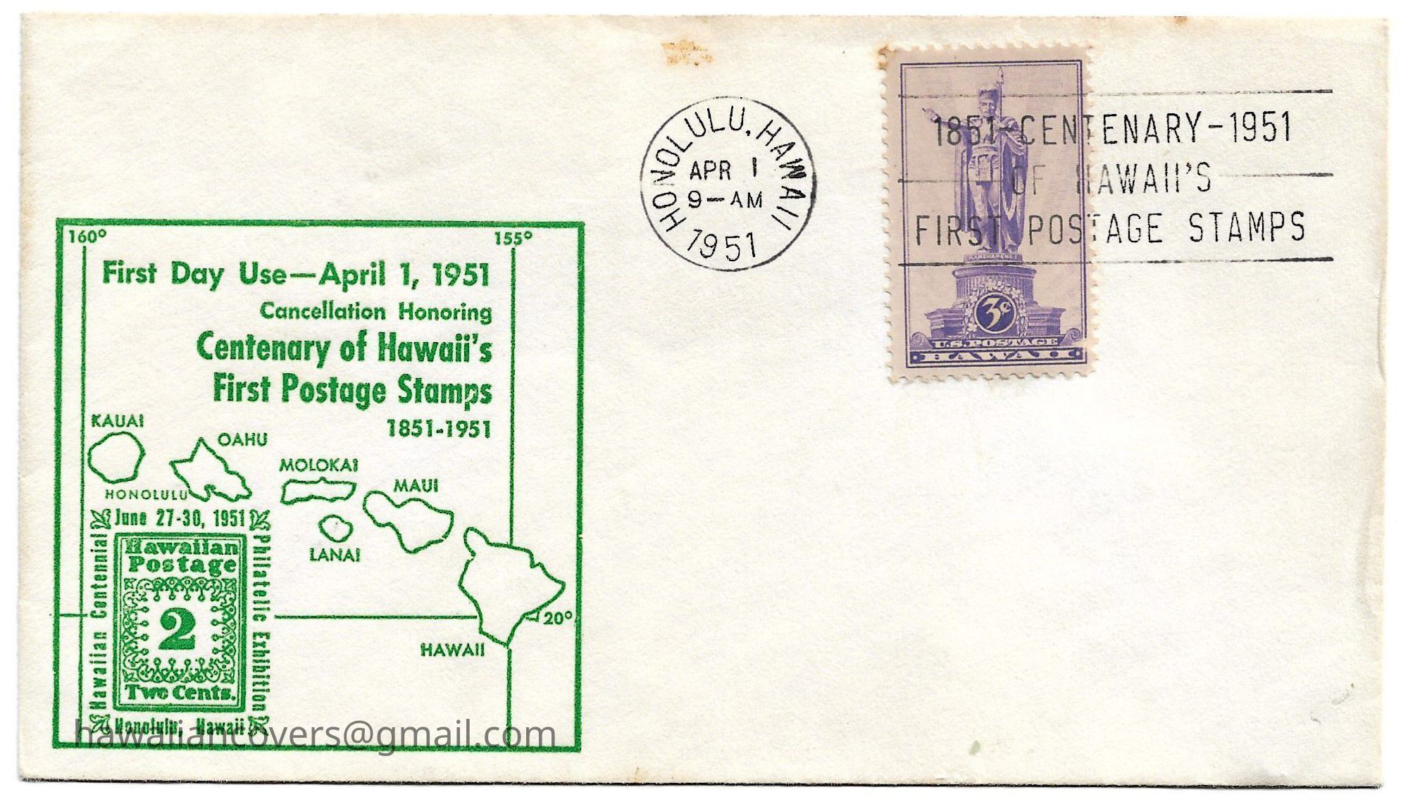 Cancellation Honoring Centenary of Hawaii's First Postage Stamps 1851 - 1951Created By