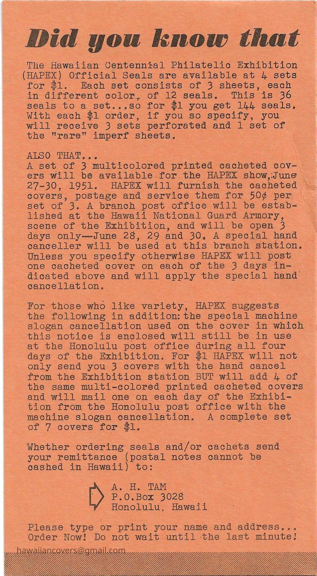 Centenary of Hawaii's First Postage Stamps 1851 - 1951Description