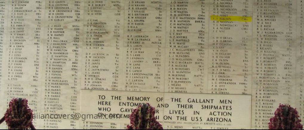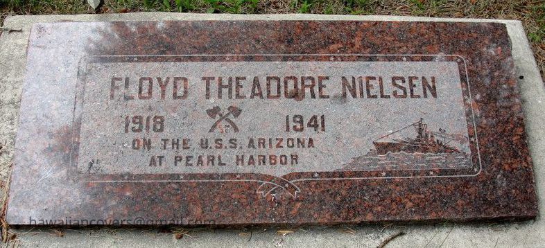 Carpenter's Mate Third Class Floyd T. Nielsen, who joined the U.S. Navy from Utah, was aboard the Arizona on the day of the Pearl Harbor attack. He was among the men lost with the ship, and his remains have not been recovered. Today, Carpenter's Mate Third Class Nielsen is memorialized on the Courts of the Missing at the National Memorial Cemetery of the Pacific.