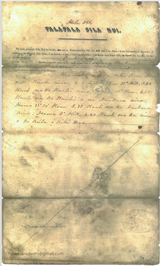 King Kamehameha III Signed Land Grant (2) DocumentsDescription