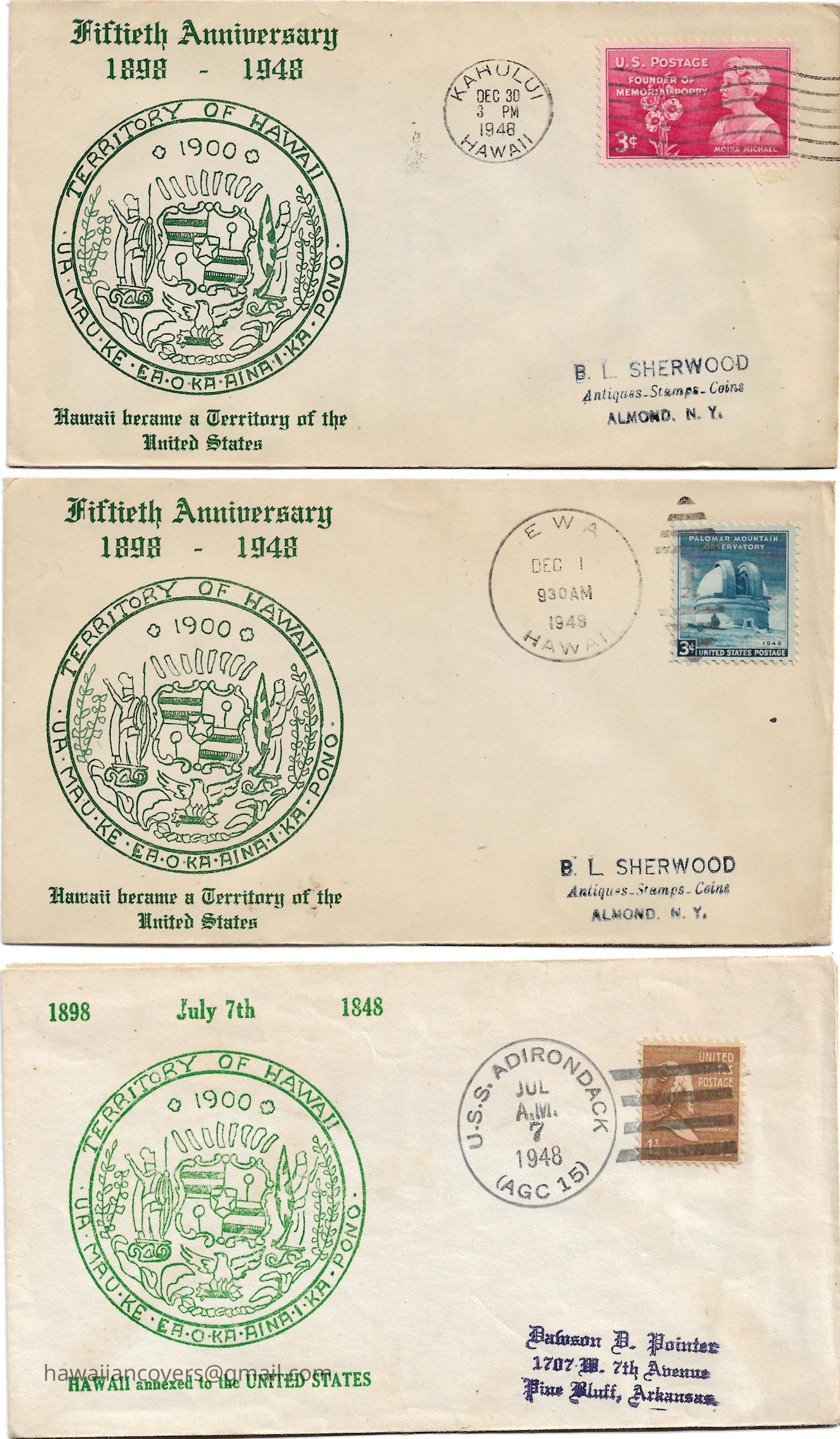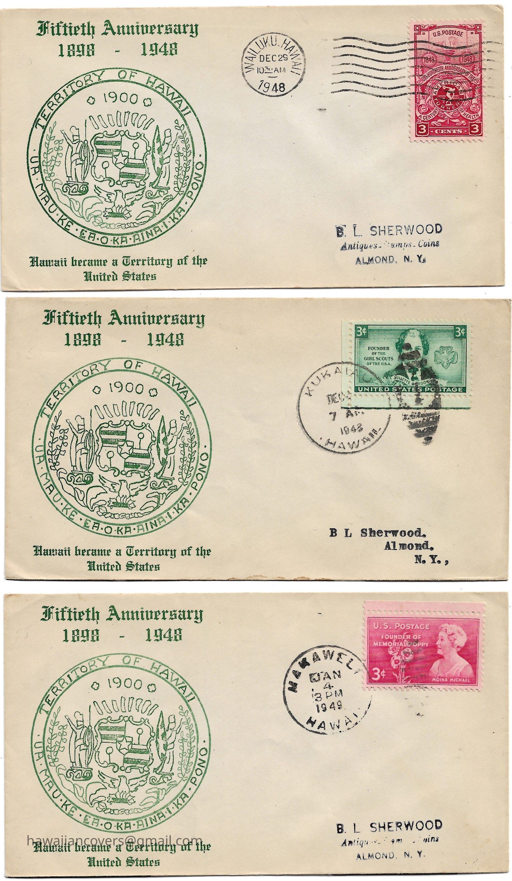 Various Cachets celebrating the Fiftieth Anniversary when Hawaii became a Territory of the United States.