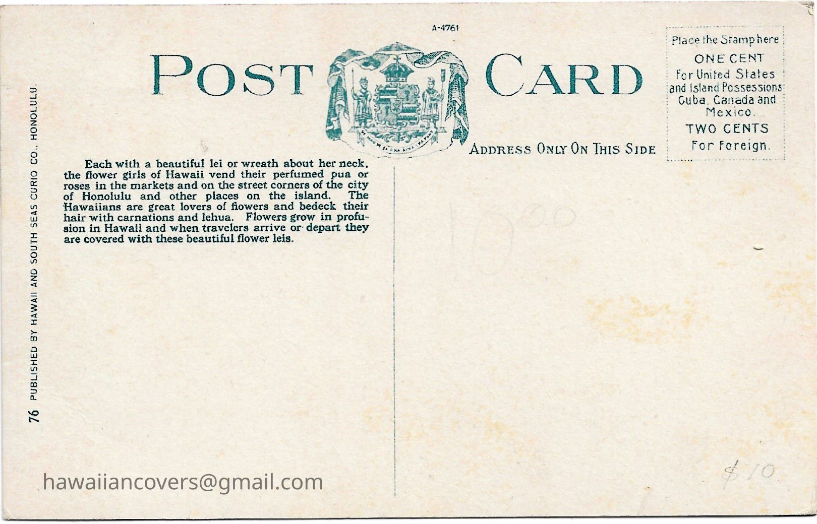 Inscribed "Flower Girls, Honolulu" Published by Hawaii & South Seas Curio Co., Honolulu