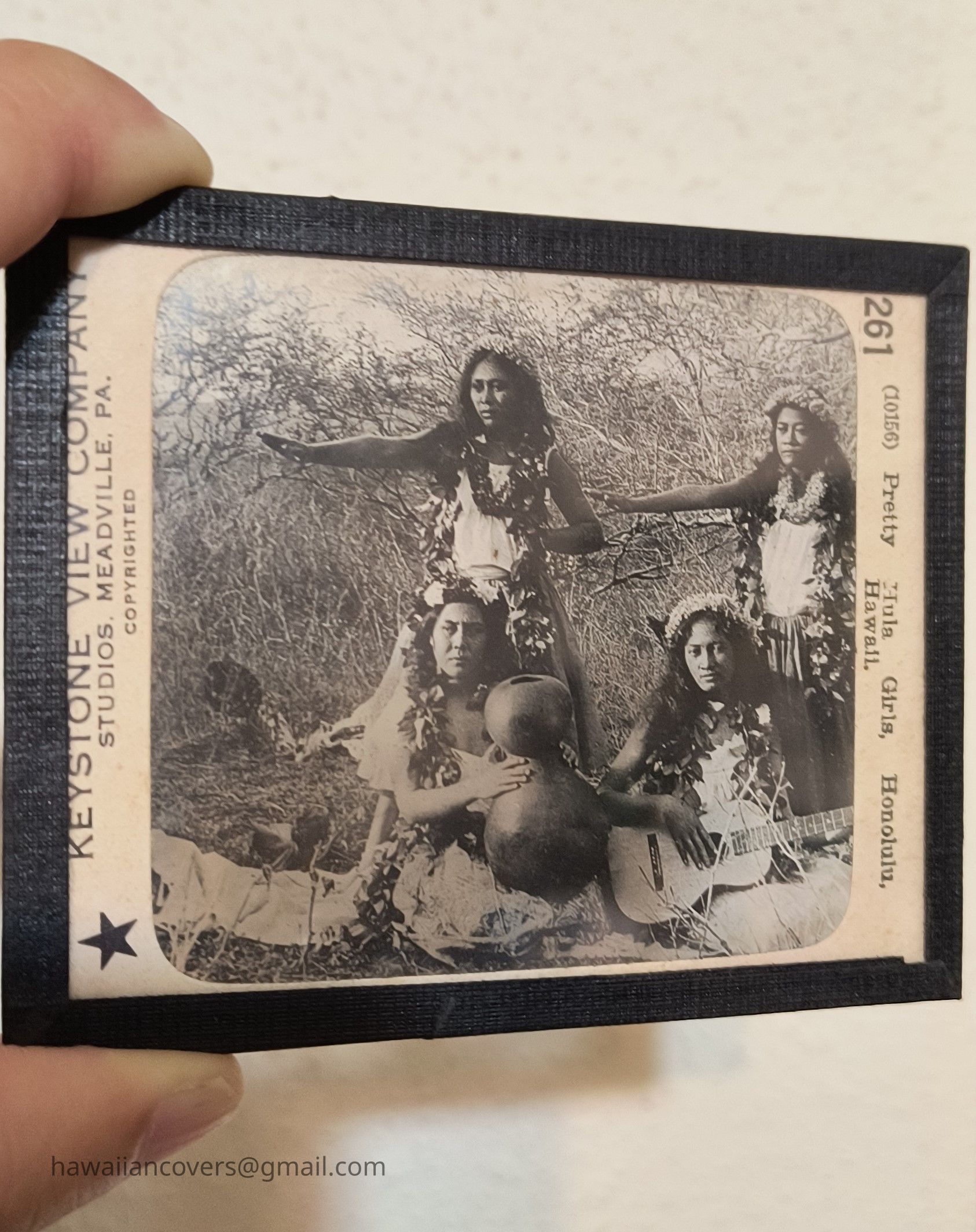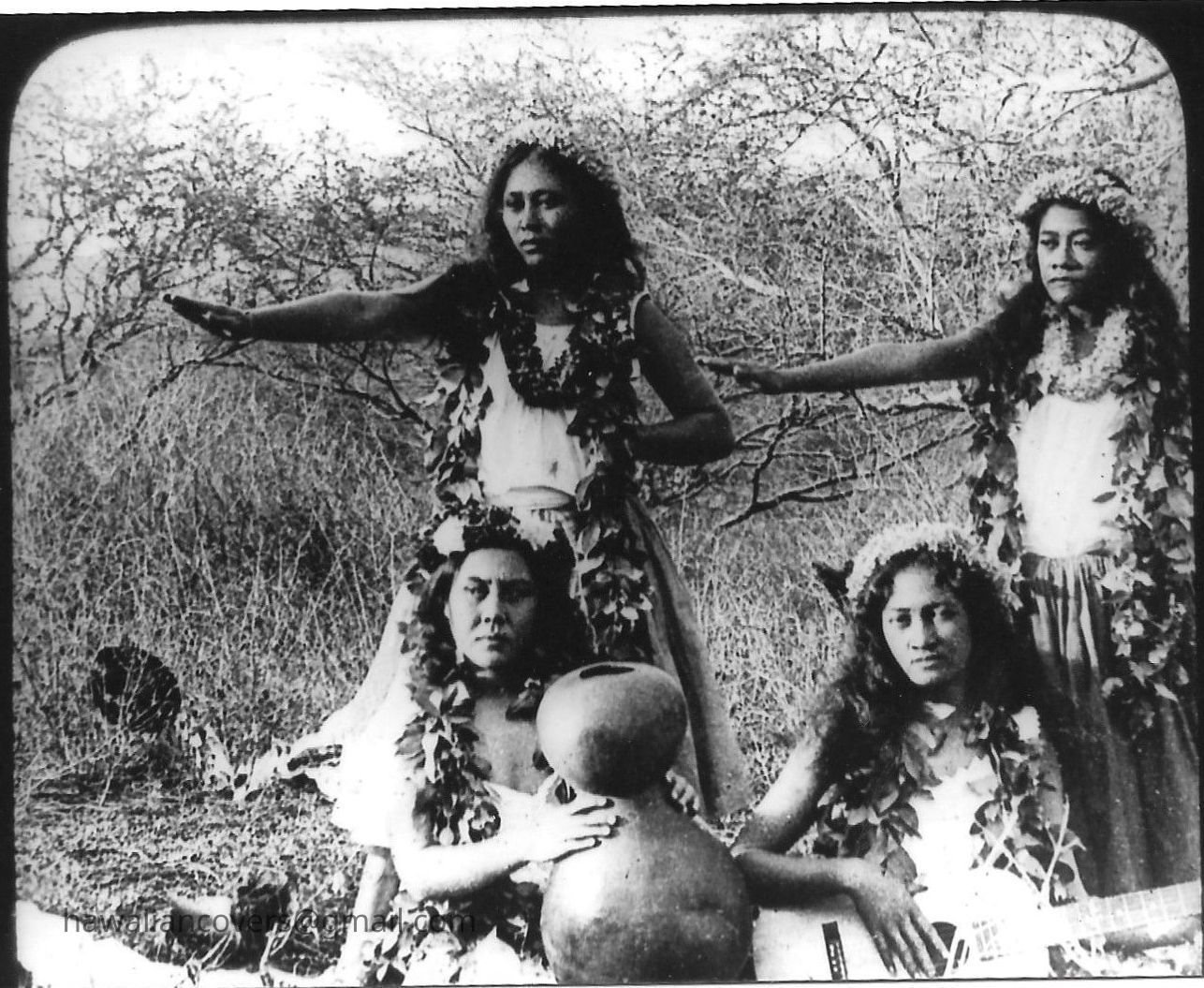 Girl Dancers, Honolulu, Hawaii (Glass Slide)Description