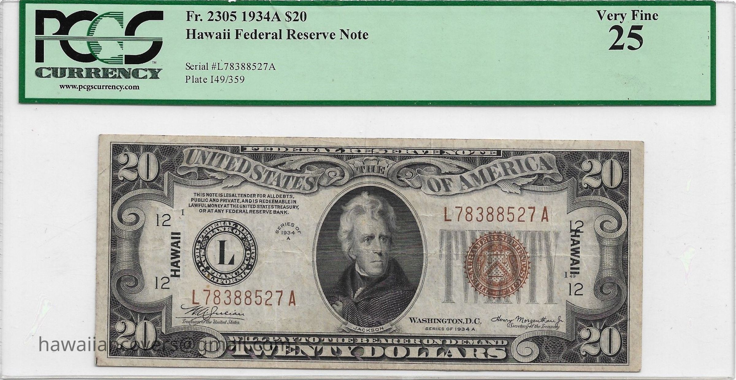On June 25, 1942, new overprinted notes were first issued. Series 1935A $1 silver certificate, Series 1934 $5 and $20 Federal Reserve Notes, and Series 1934A $5, $10, and $20 Federal Reserve Notes from the Federal Reserve Bank of San Francisco were issued with brown treasury seals and serial numbers.