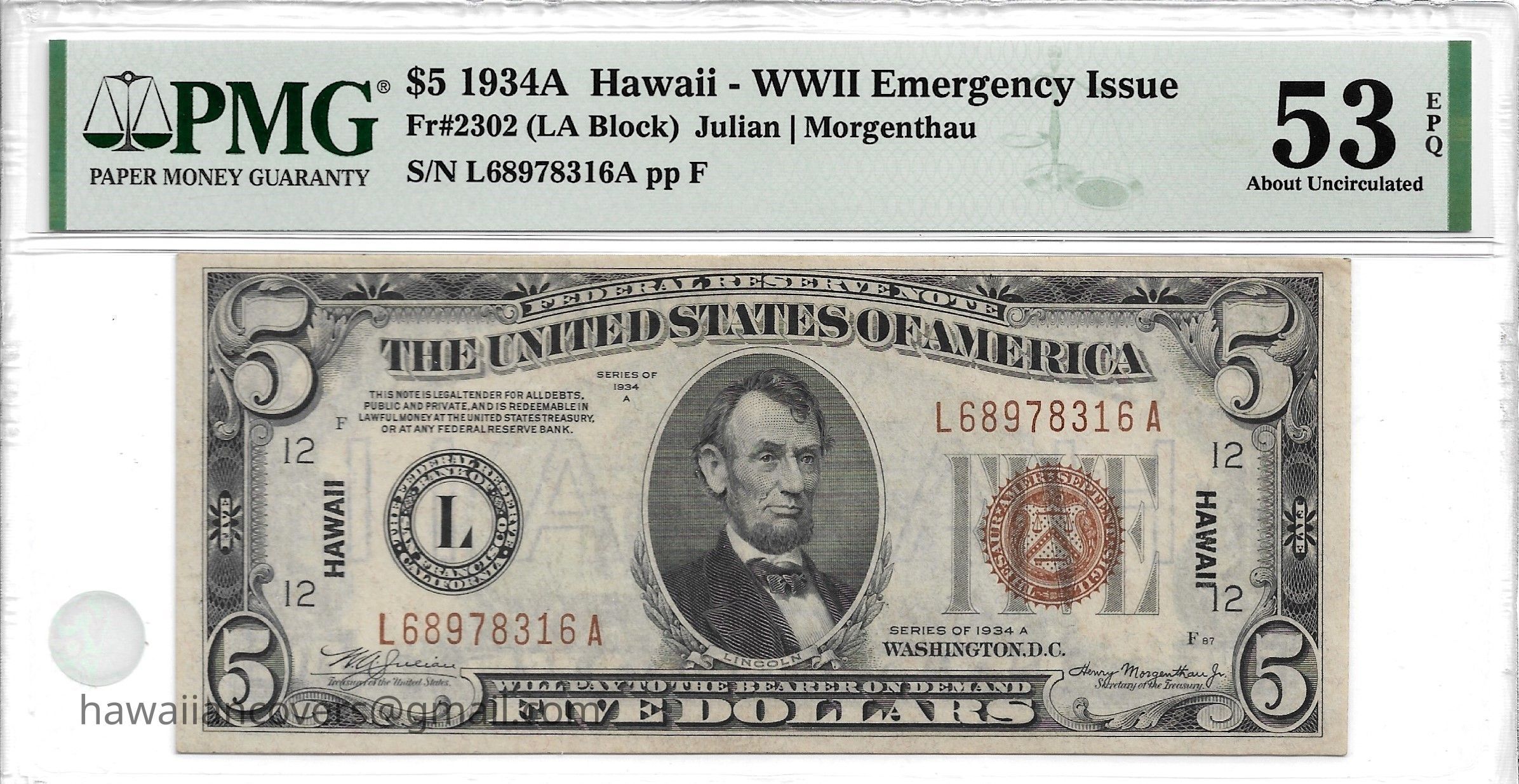 Hawaii Overprint Note Collection (WWII Emergency Issue)Description