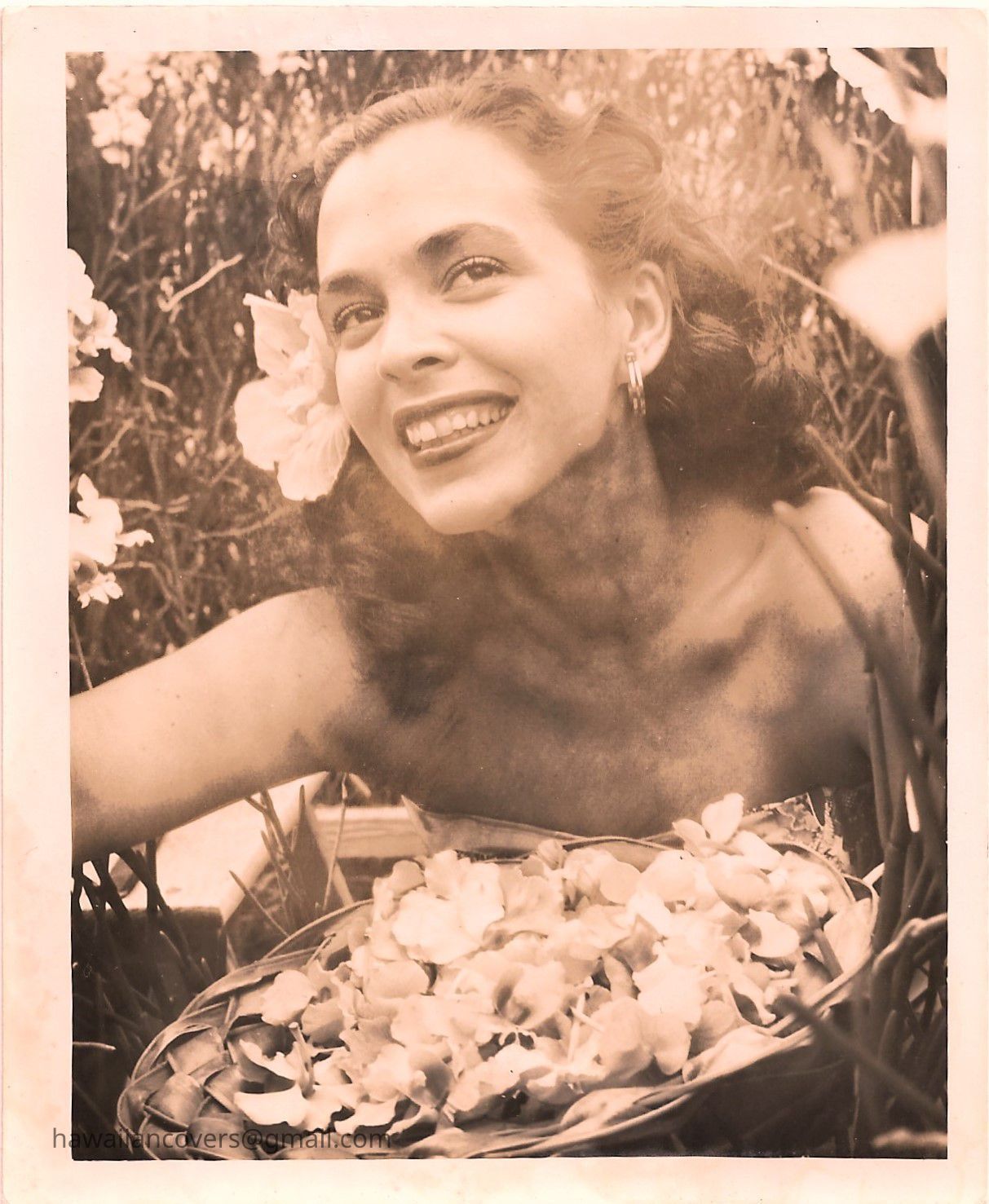 Hawaiian Beauty with Lauhala Basket of Flowers