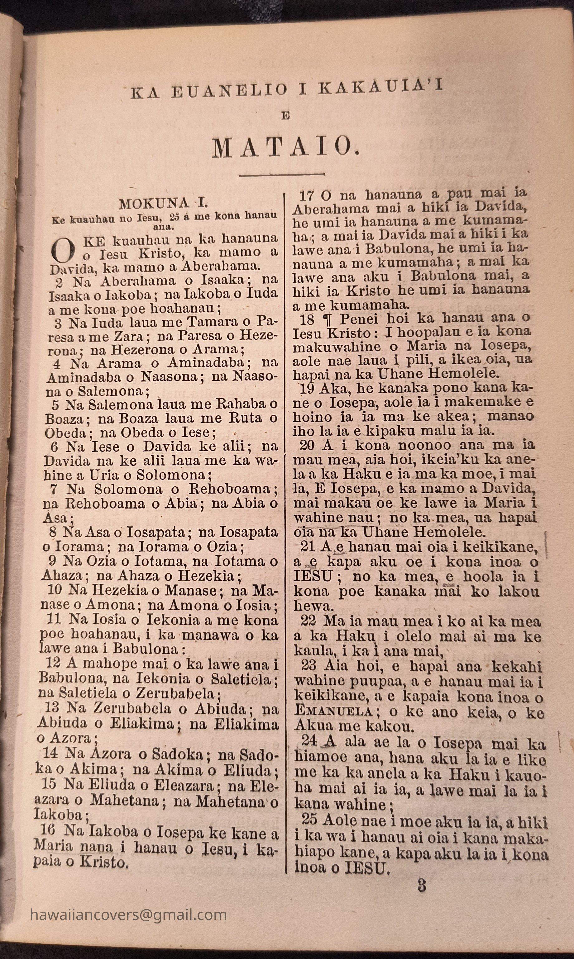 Hawaiian Bible, The New Testament in the Hawaiian LanguageDescription
