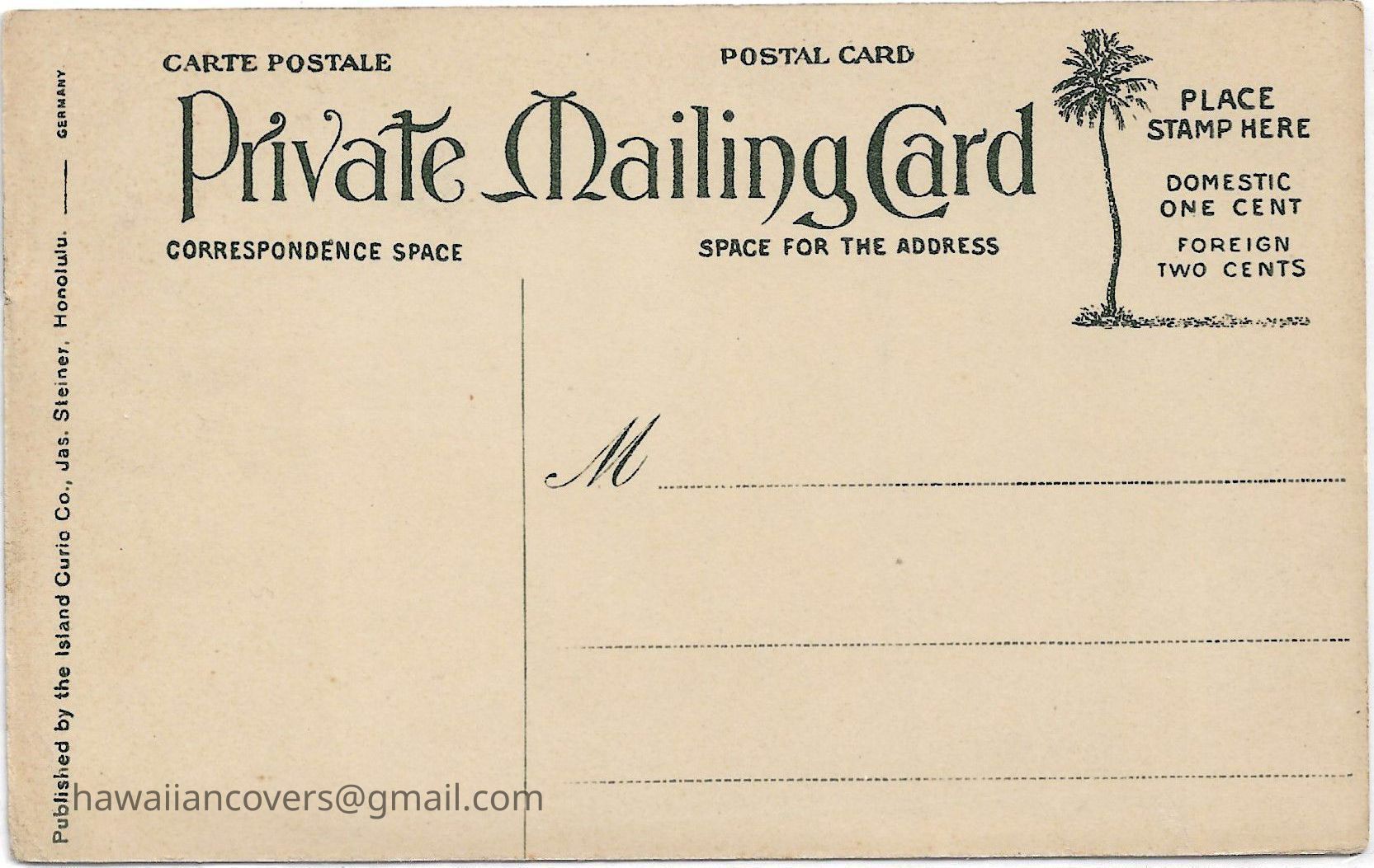 Inscribed "Hawaiian Schoolgirl" Published by the Island Curio Co., Jas. Steiner, Honolulu