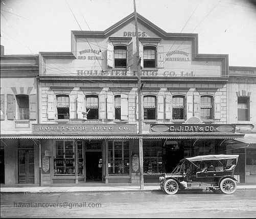 In 1893 Hollister & Co. was incorporated as The Hollister Drug Company separating it from the tobacco business, which was removed to the corner of Fort and Merchant Streets and conducted under the old name of Hollister & Co., which continued to prosper until April 1900. The primary emphasis changed over time, with the tobacconist element shifting to secondary status under the drug business.