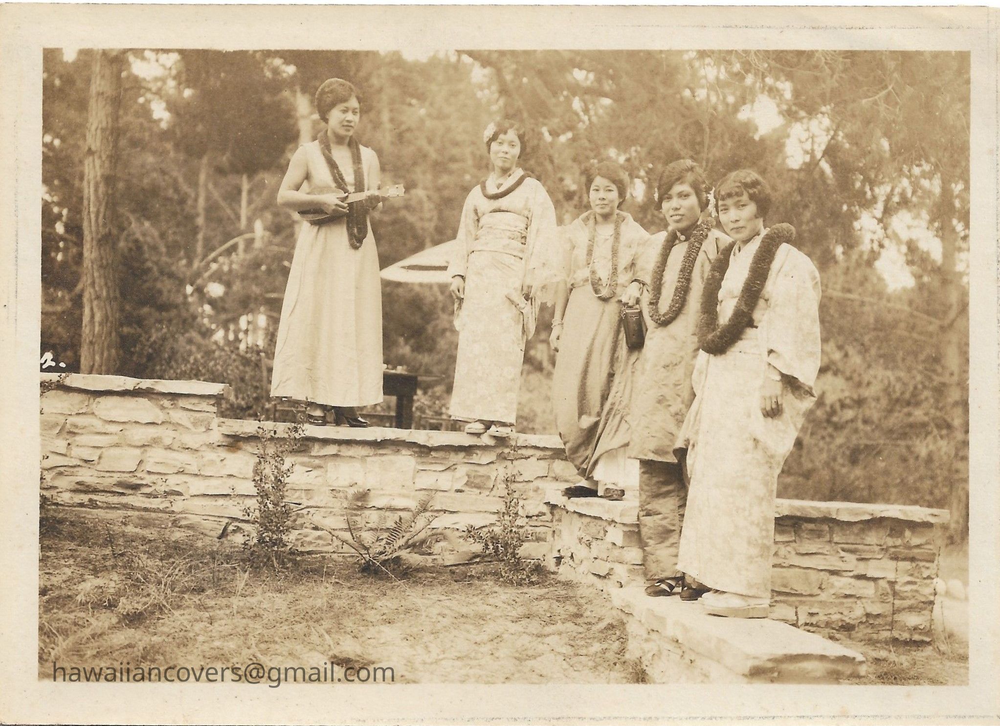 Japanese women wearing leis. Circa 1920's