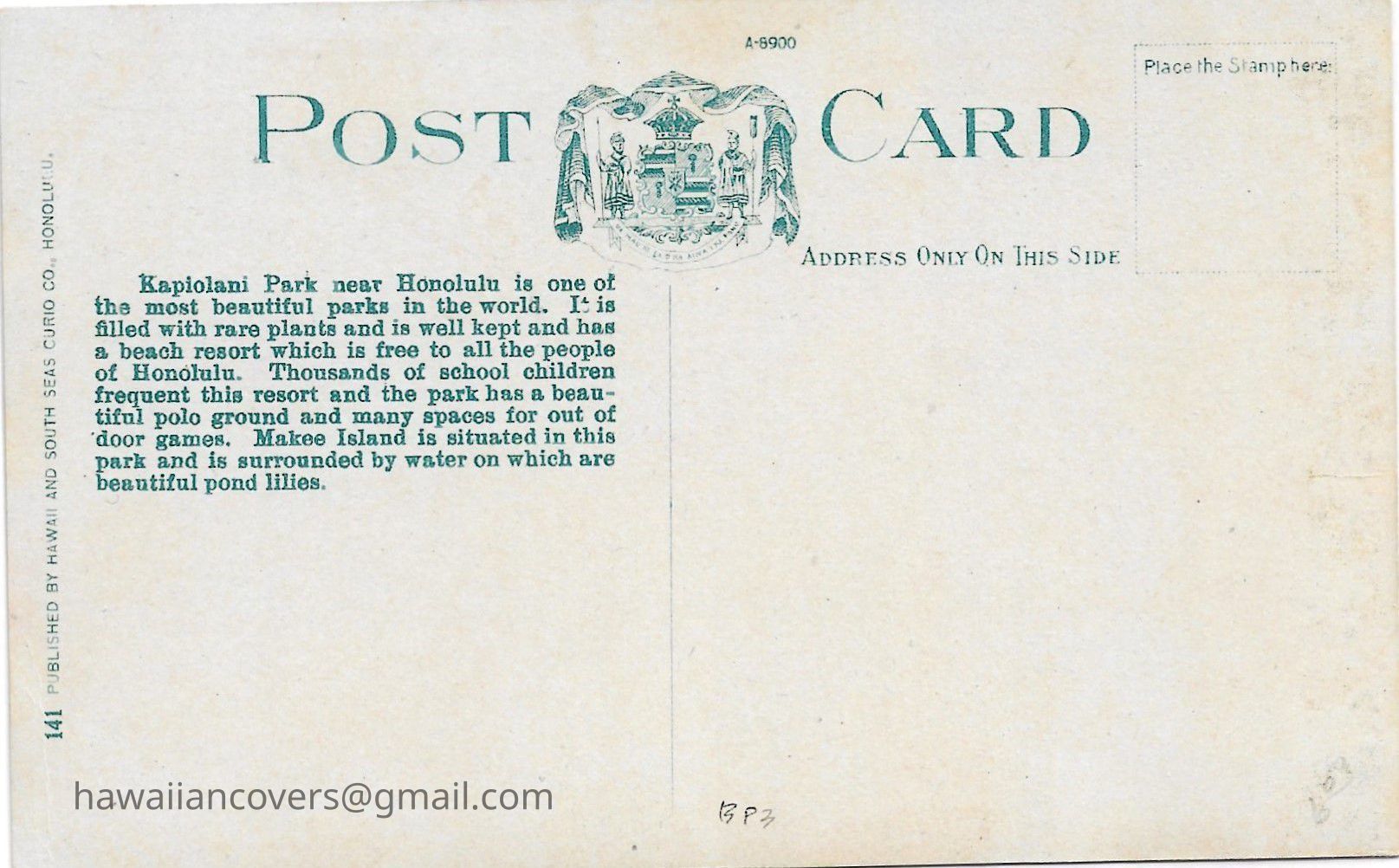 Inscribed Kapiolani Park, Honolulu