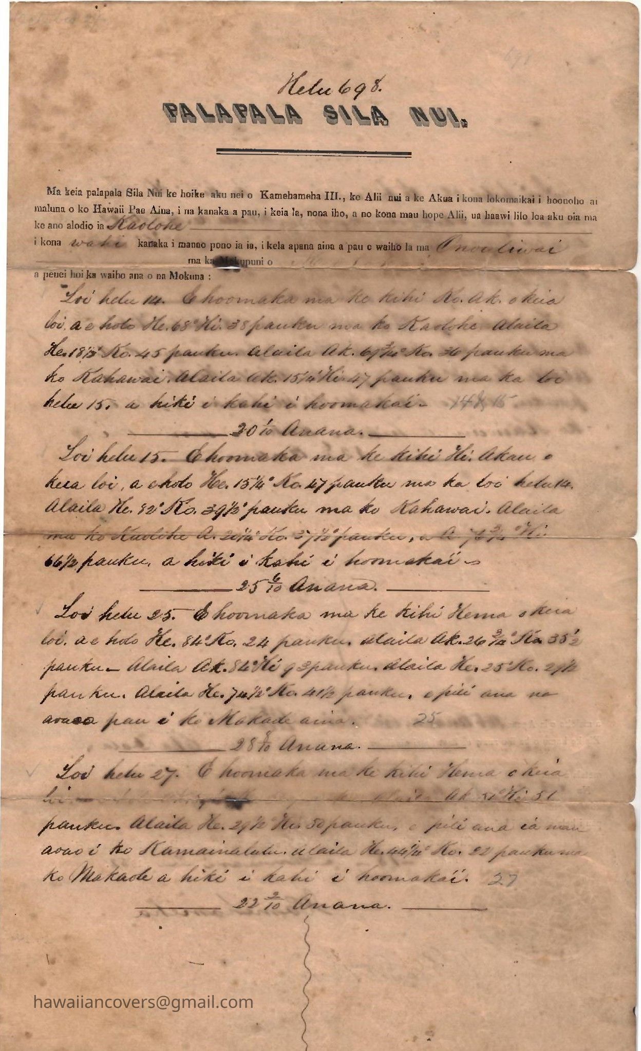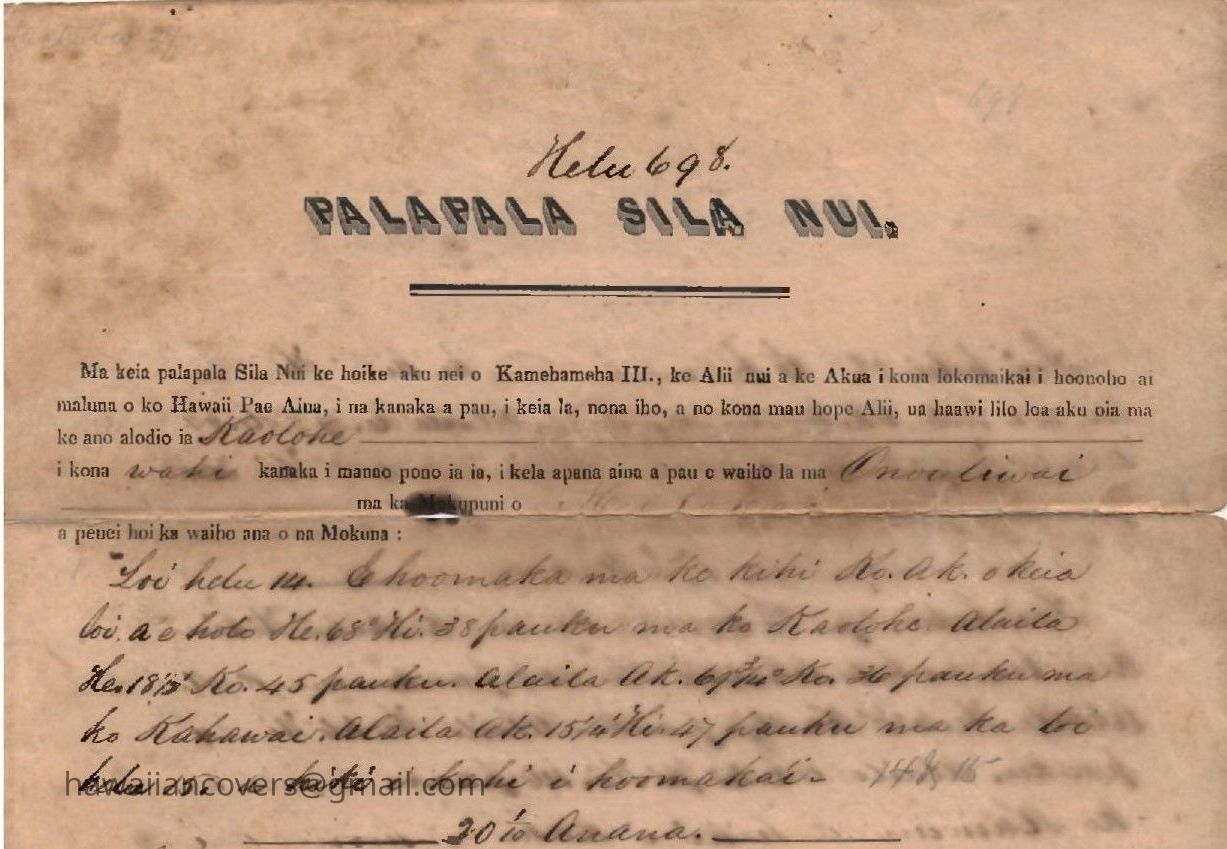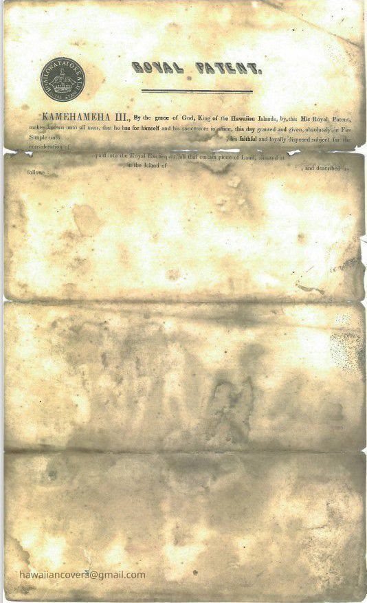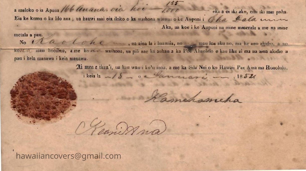 King Kamehameha III Signed Land Grant (2) DocumentsDescription