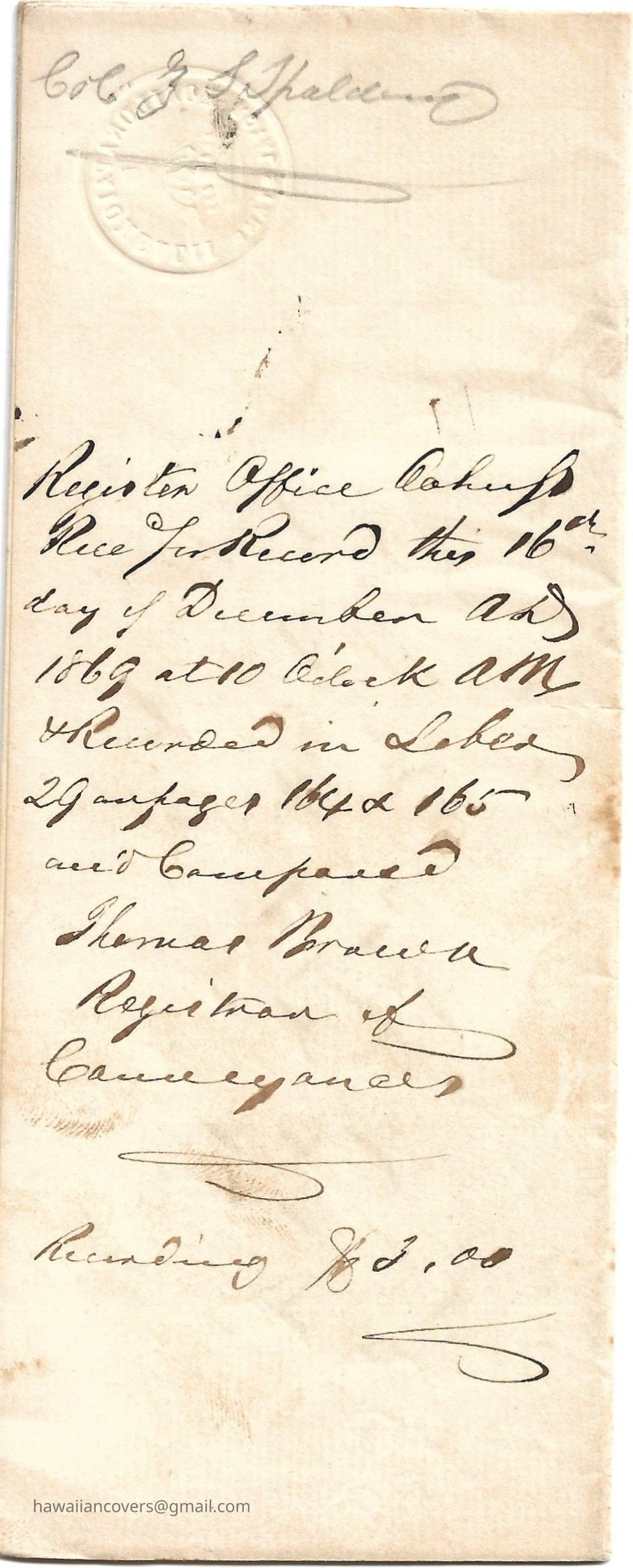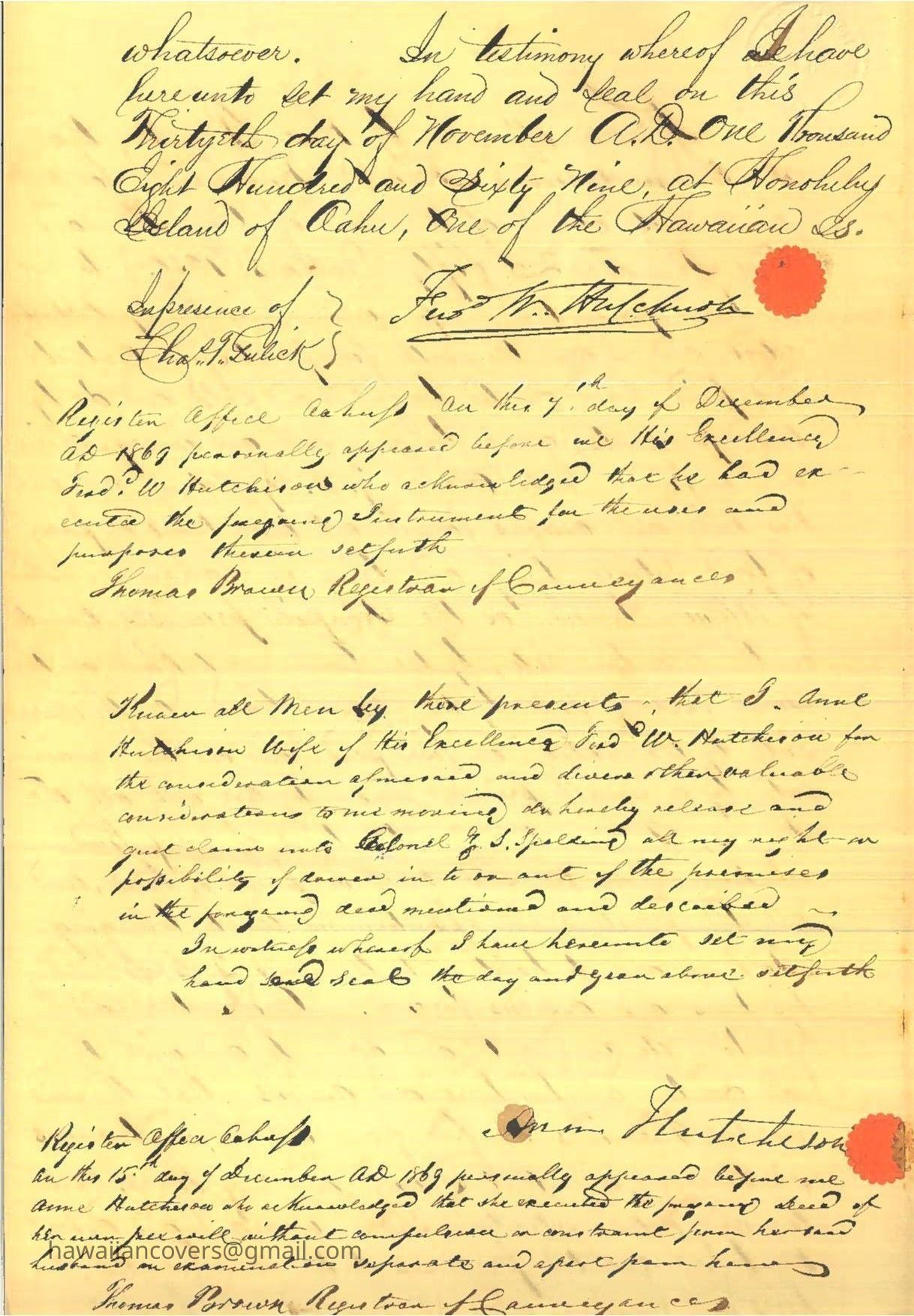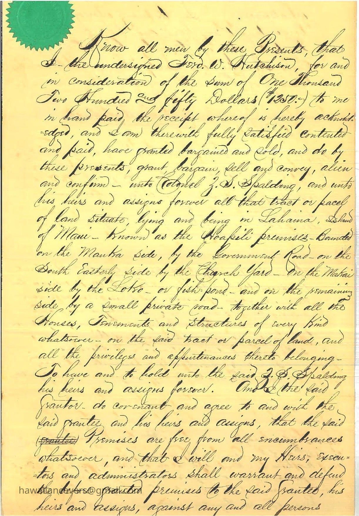 Lahaina Deed Transfer 1869Description