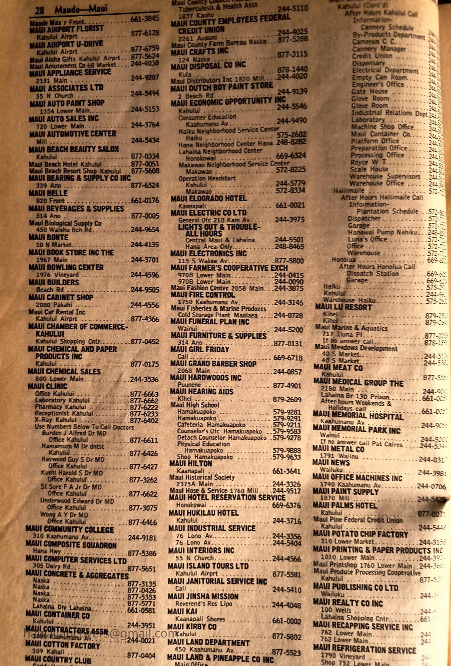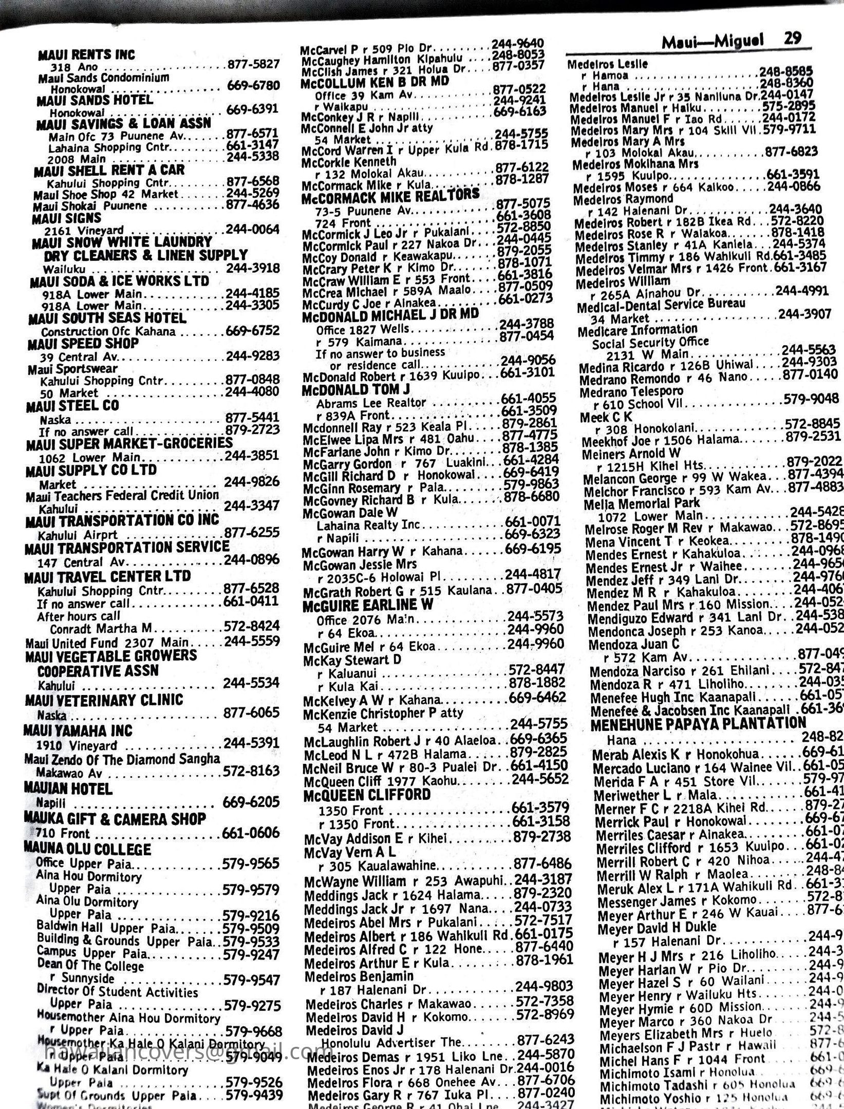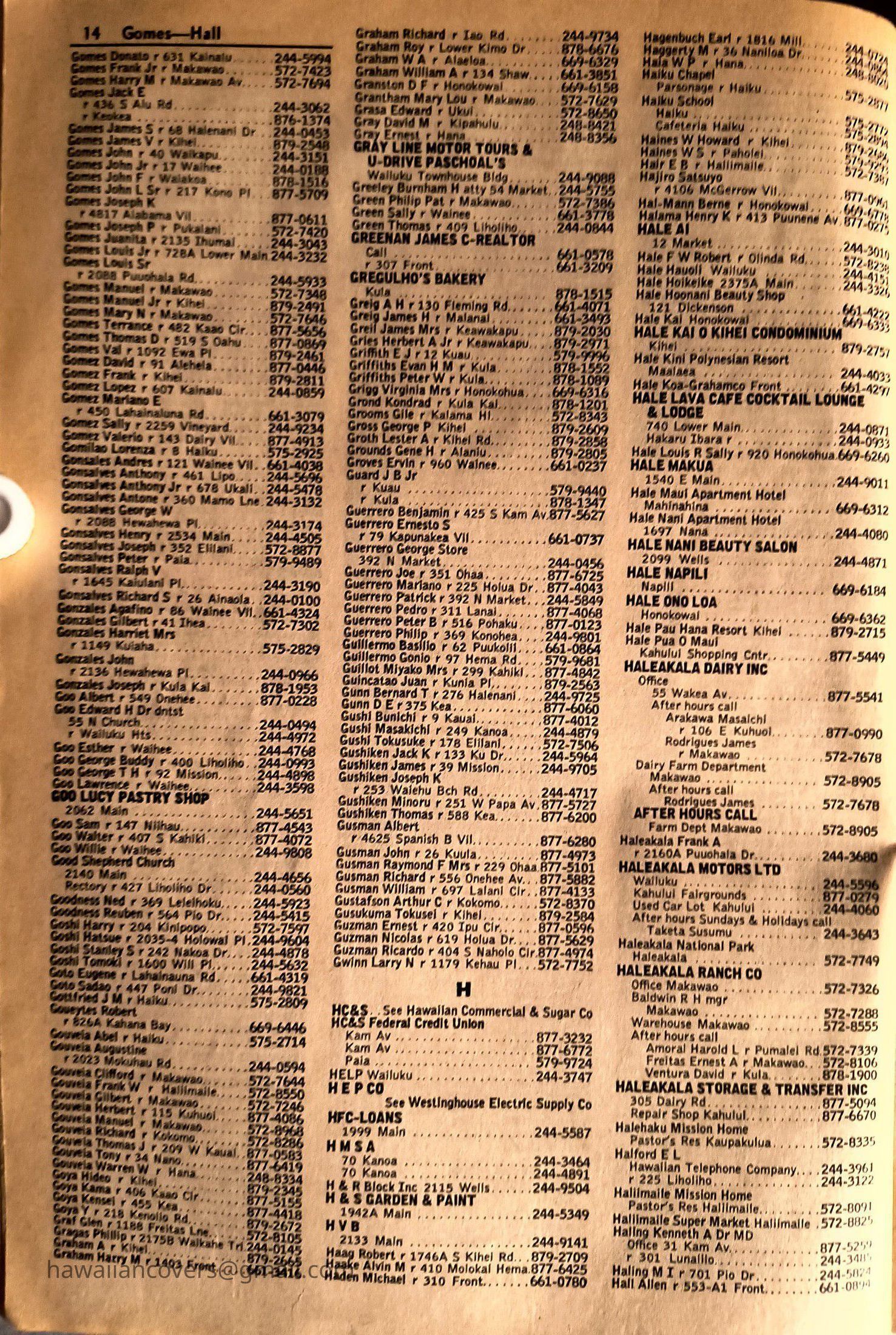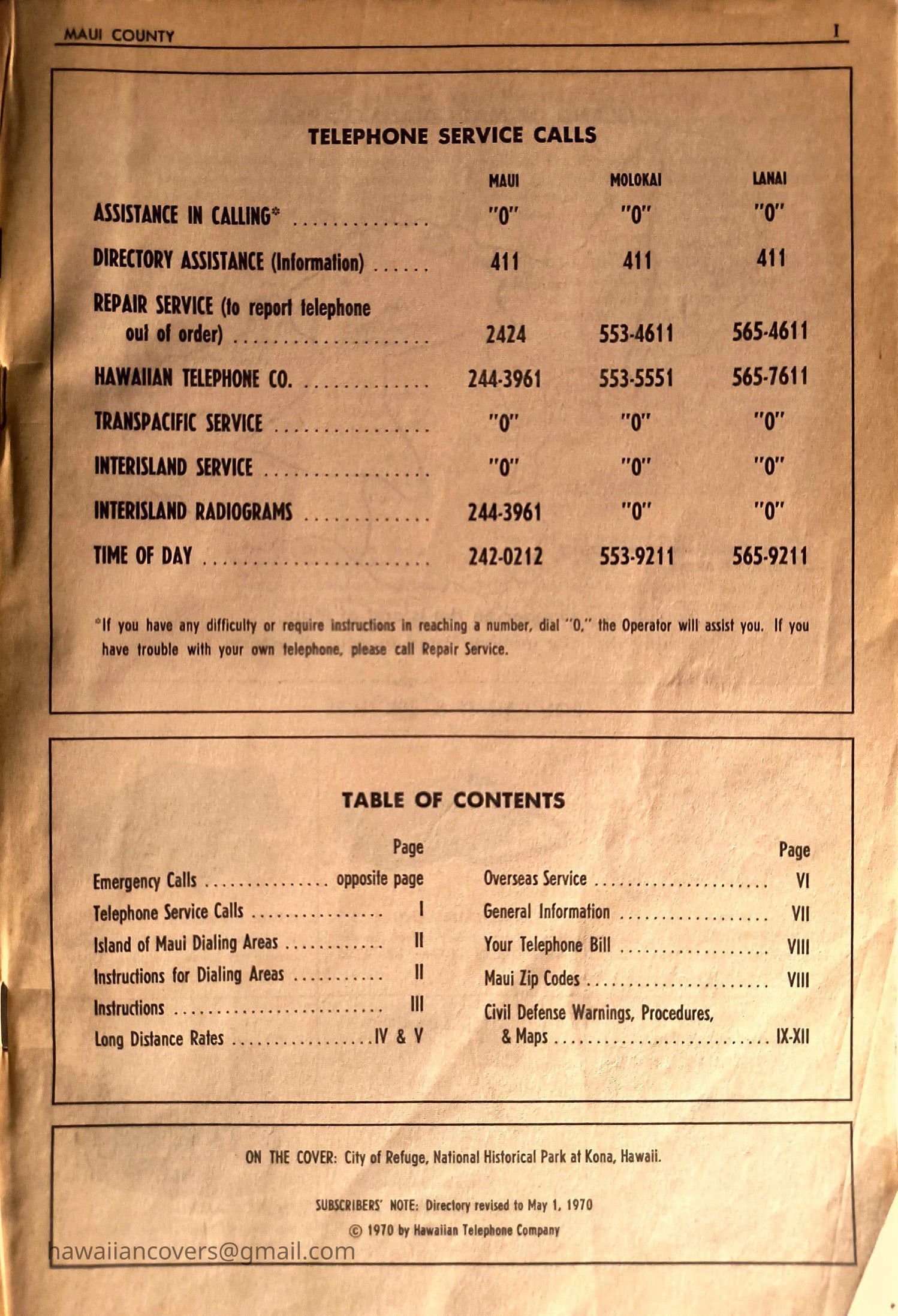 Maui Telephone Directory Published July 1, 1970