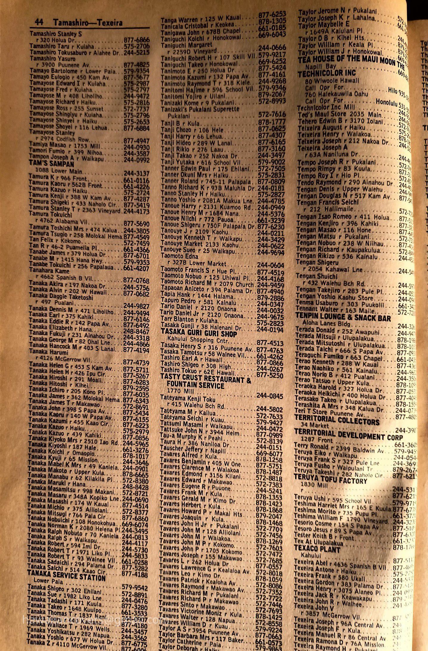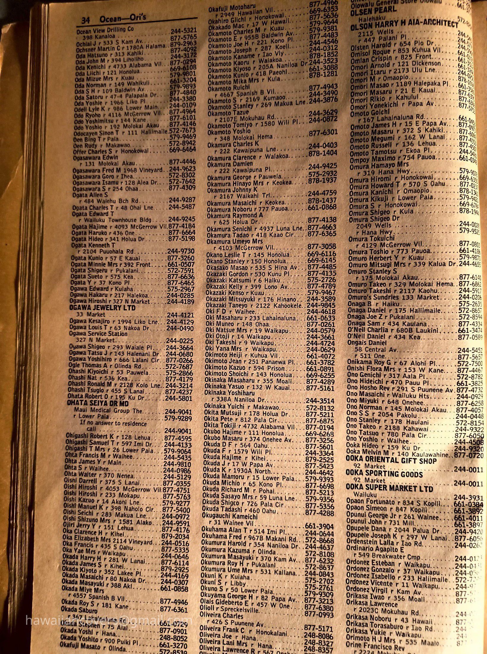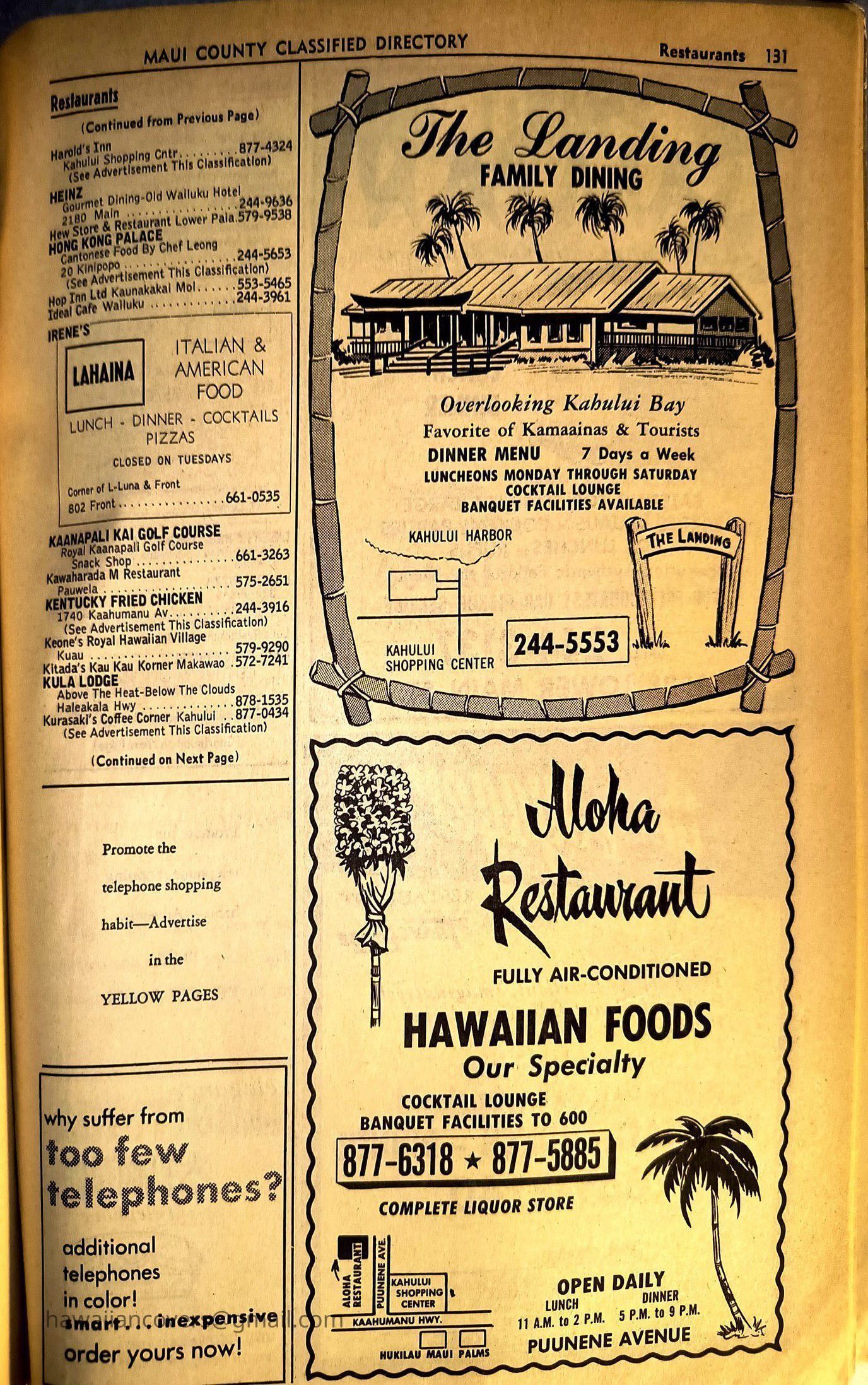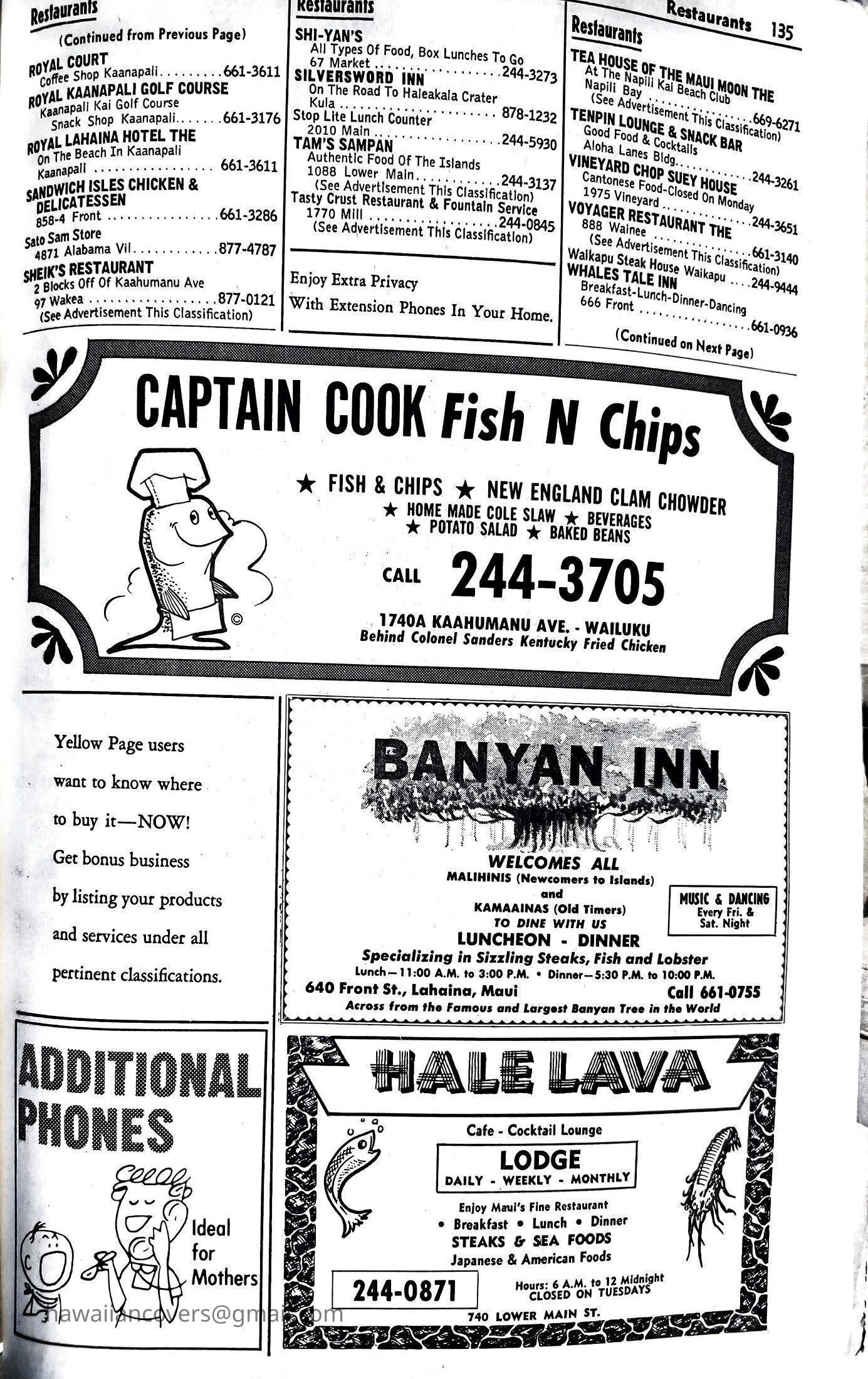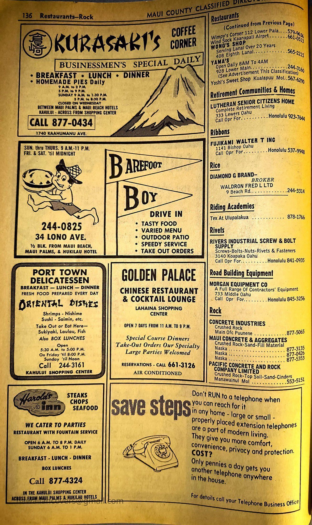 Maui Telephone Directory Published July 1, 1970