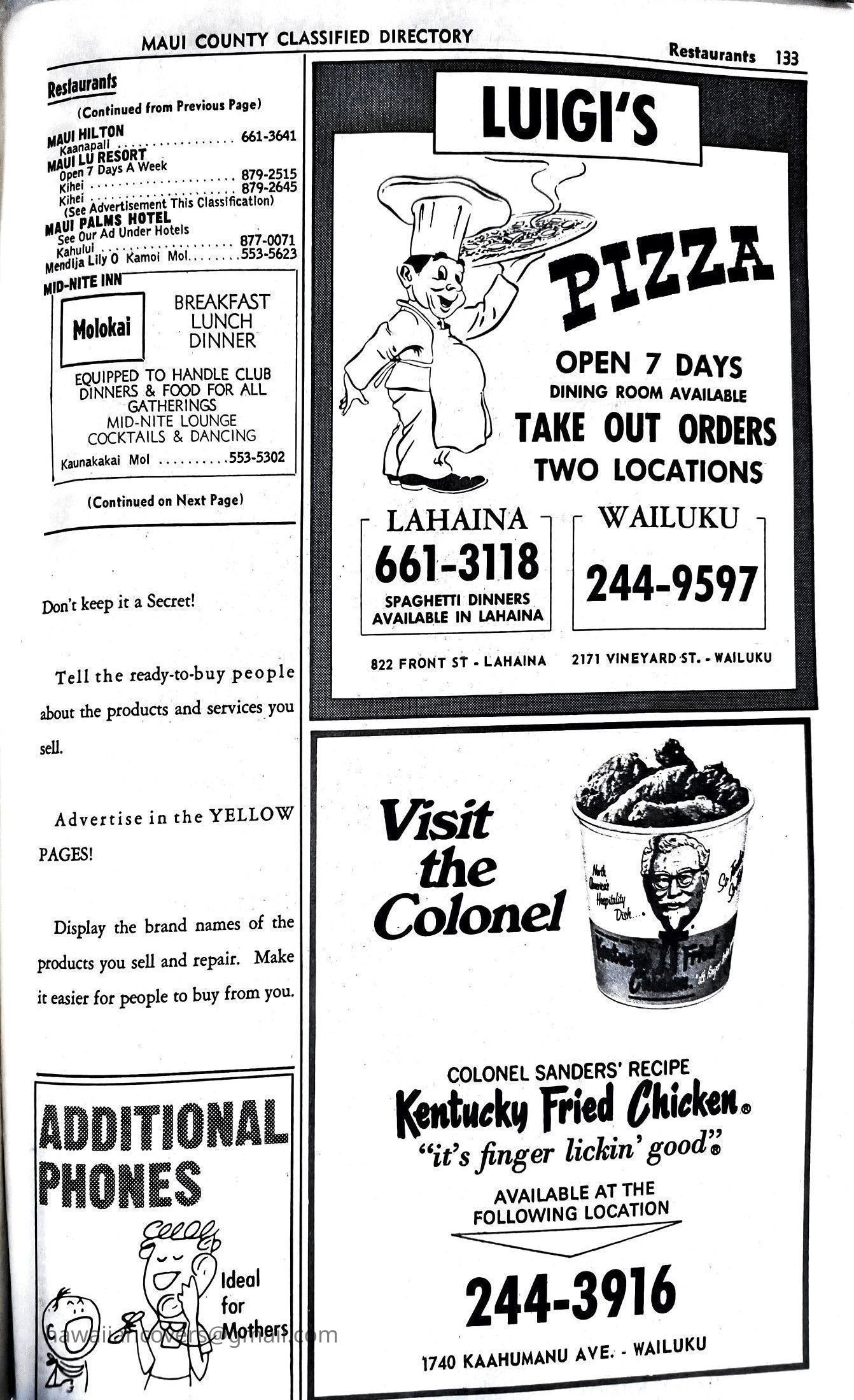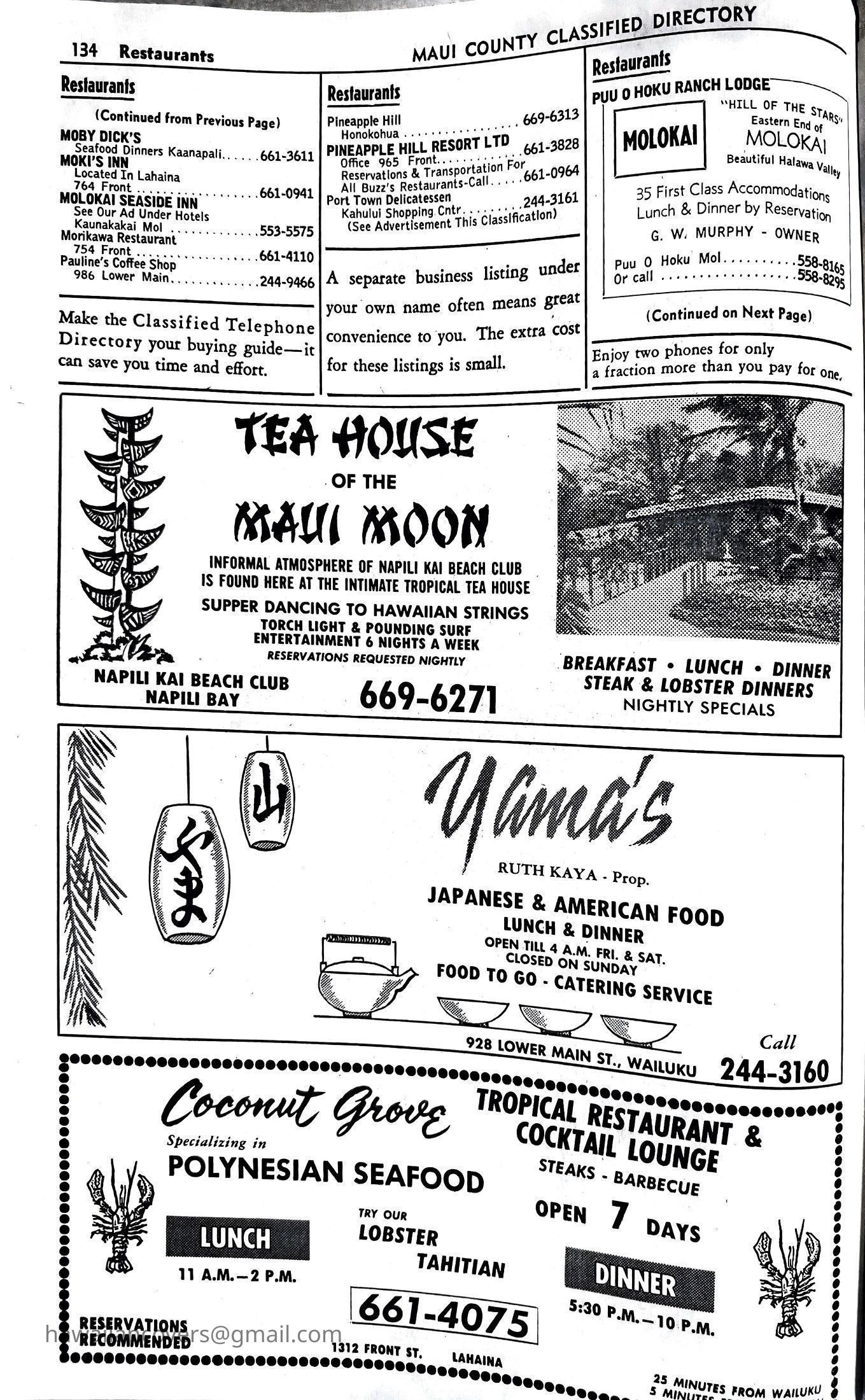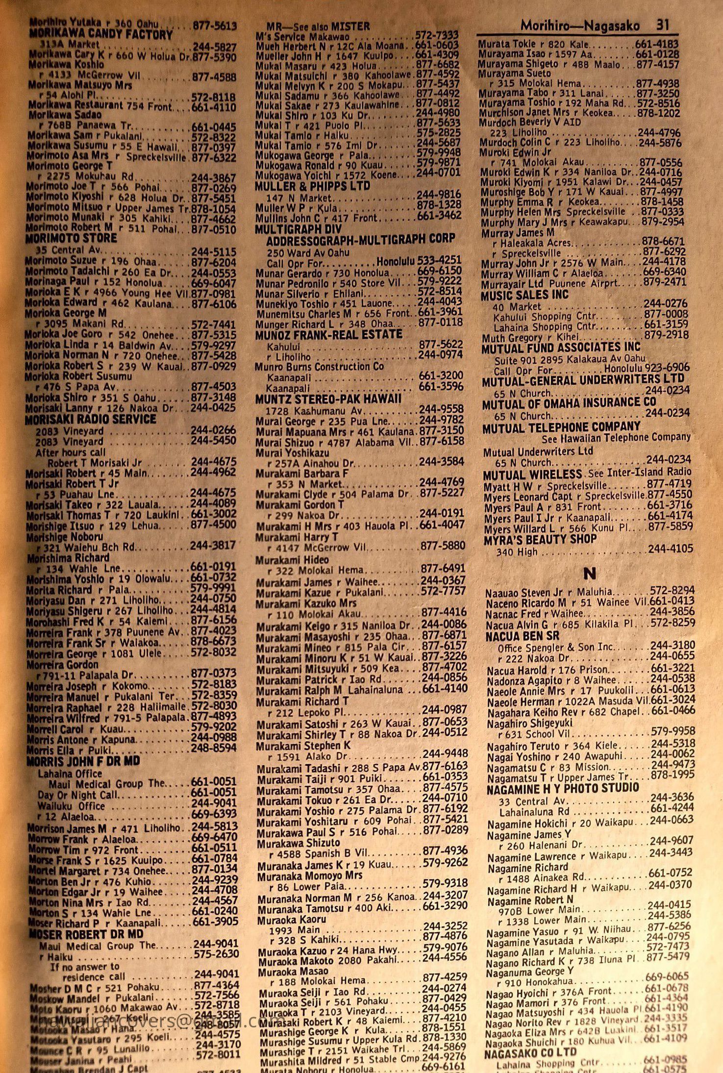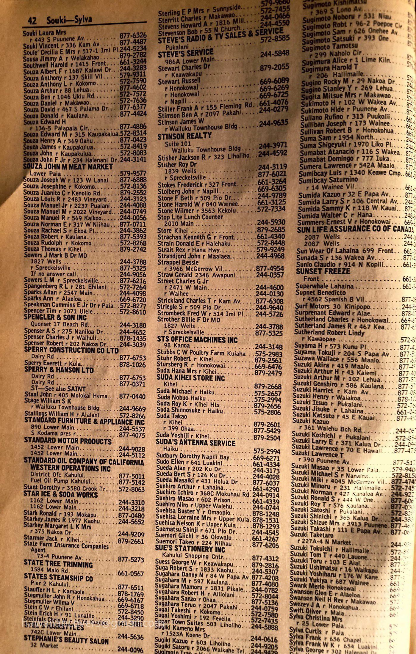 Maui Telephone Directory Published July 1, 1970