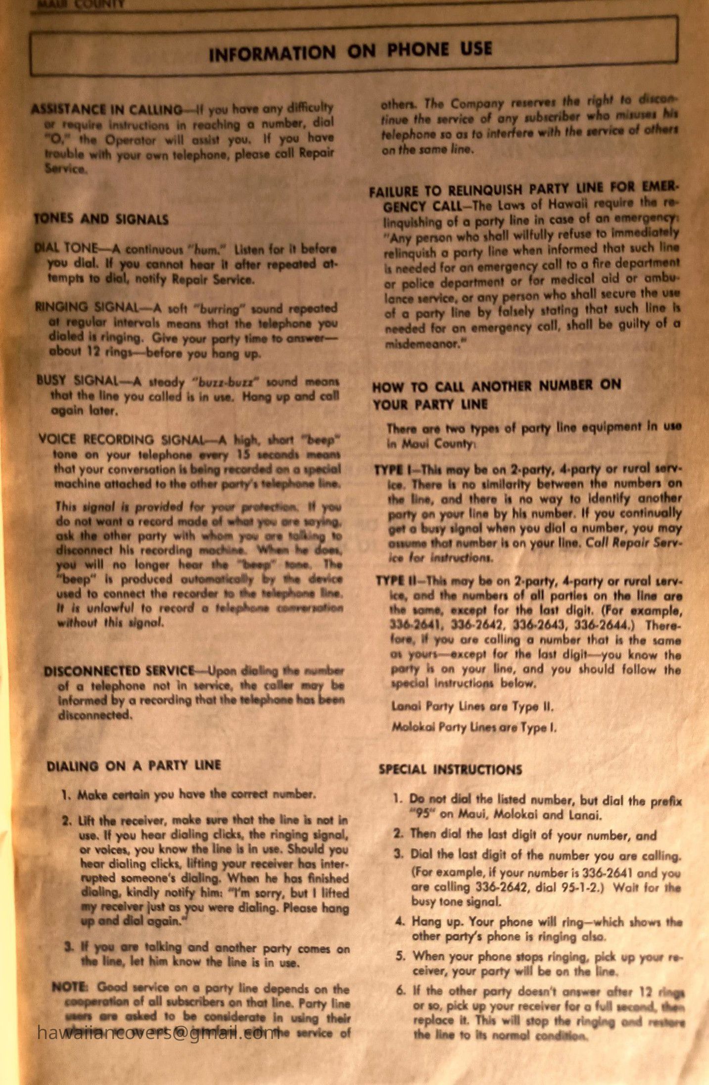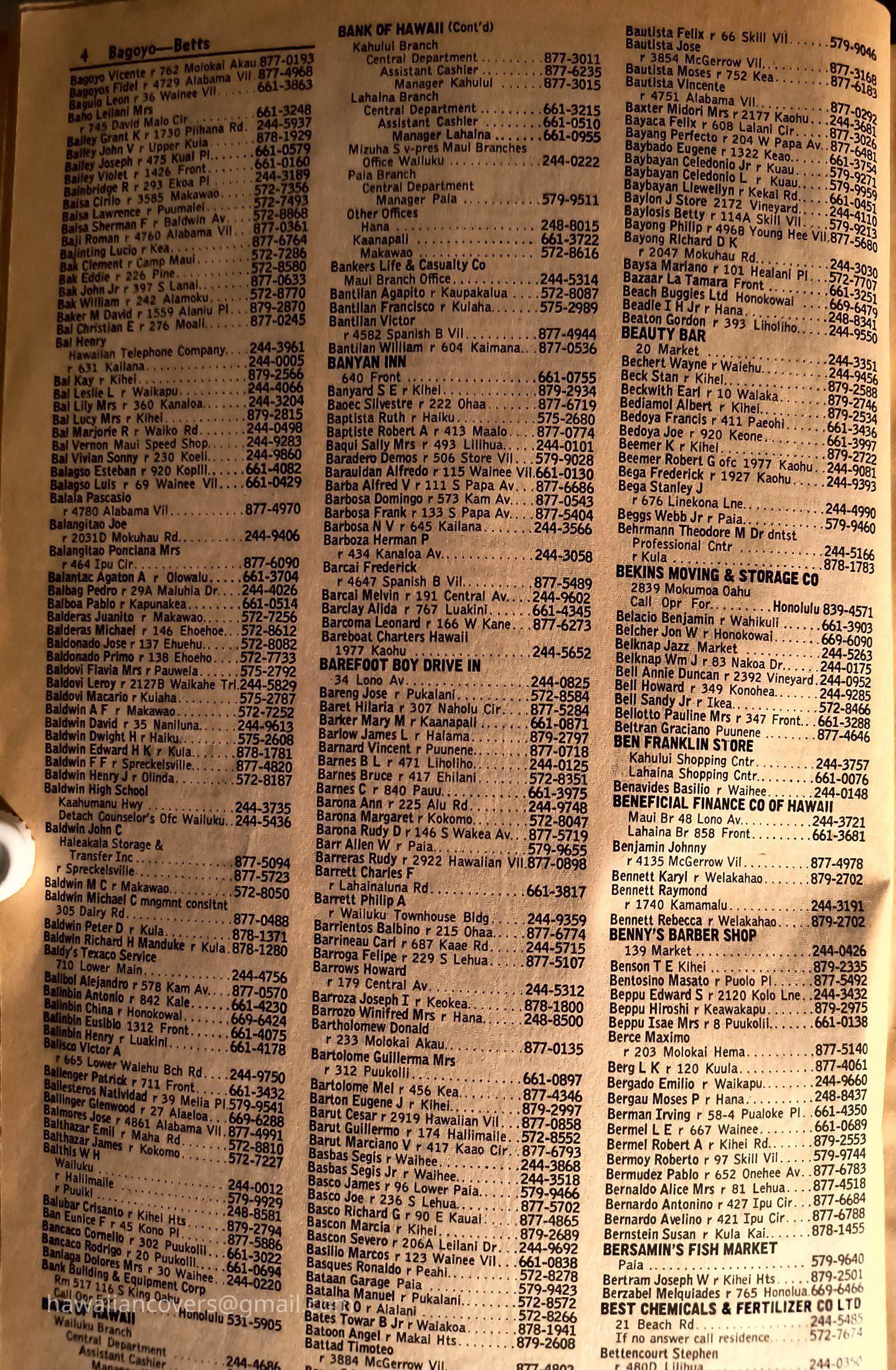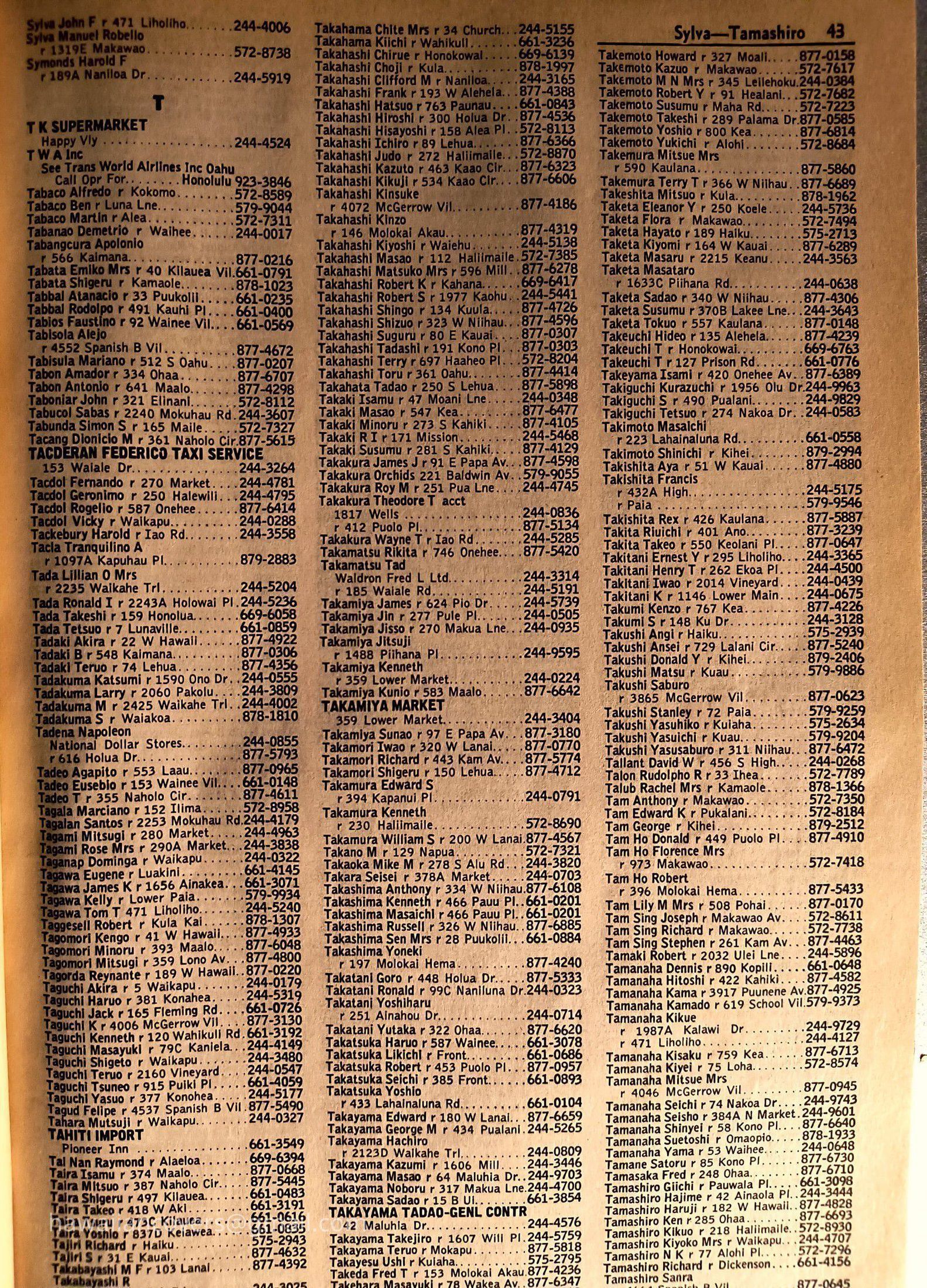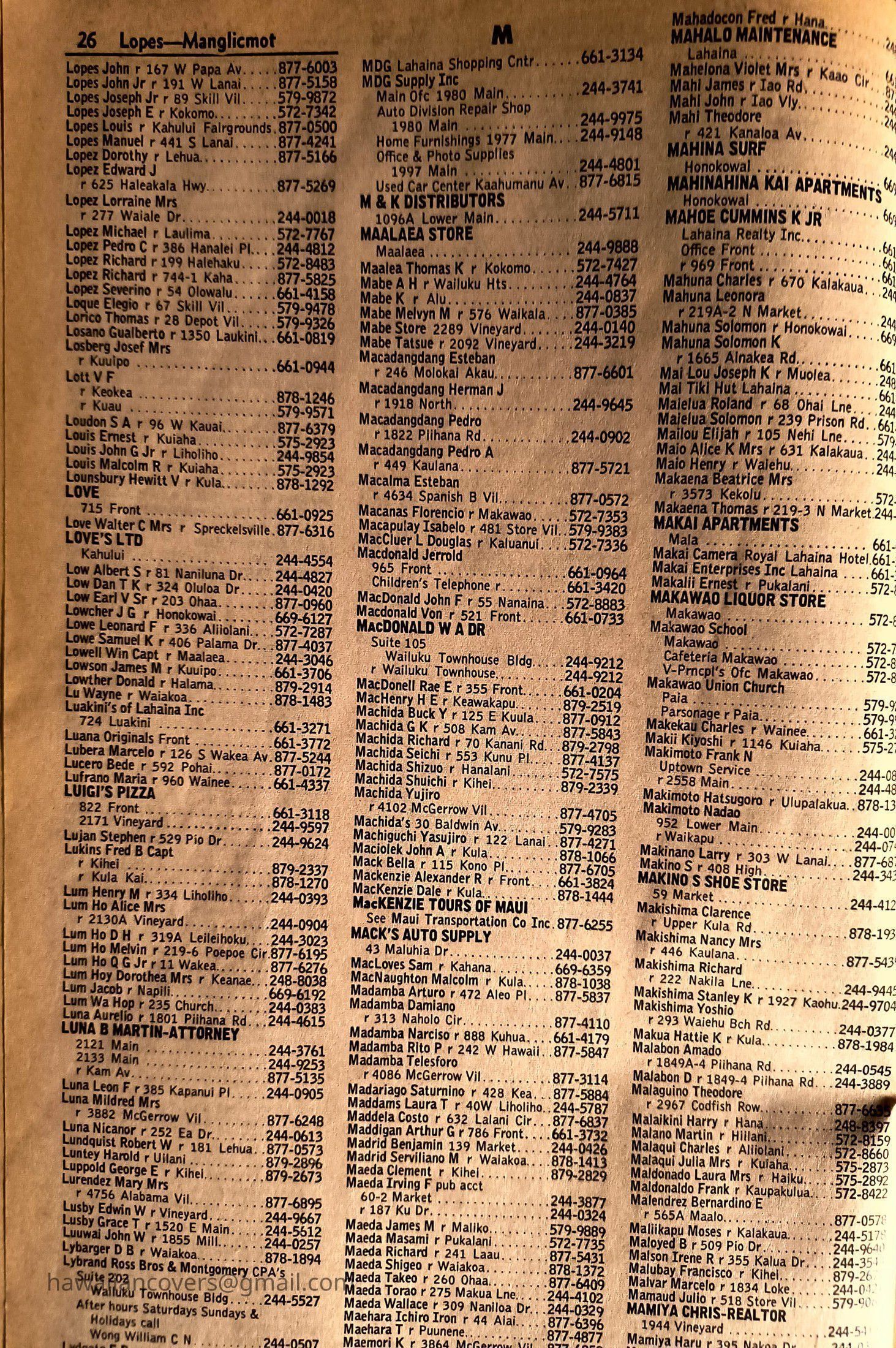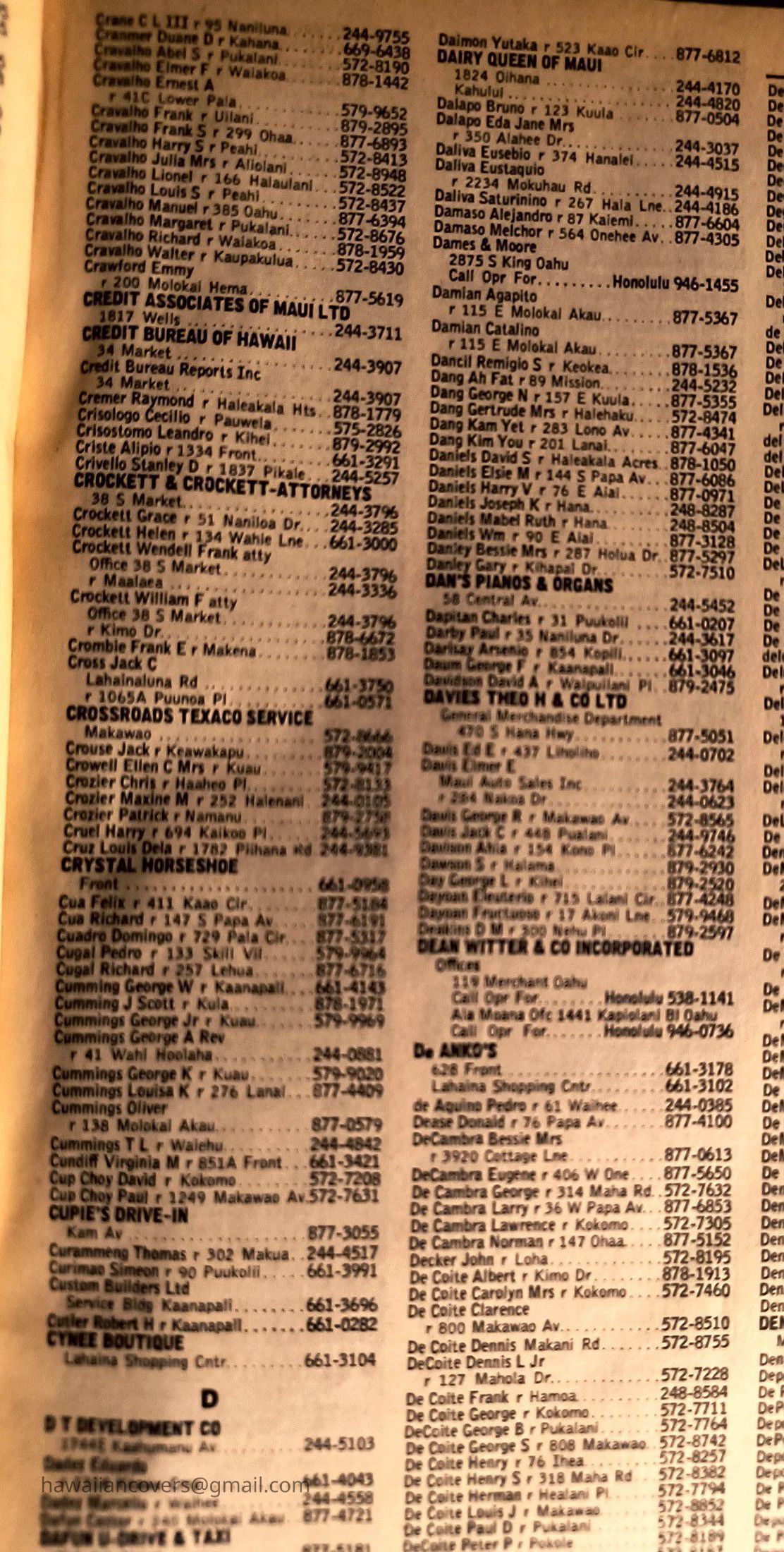 Maui Telephone Directory Published July 1, 1970