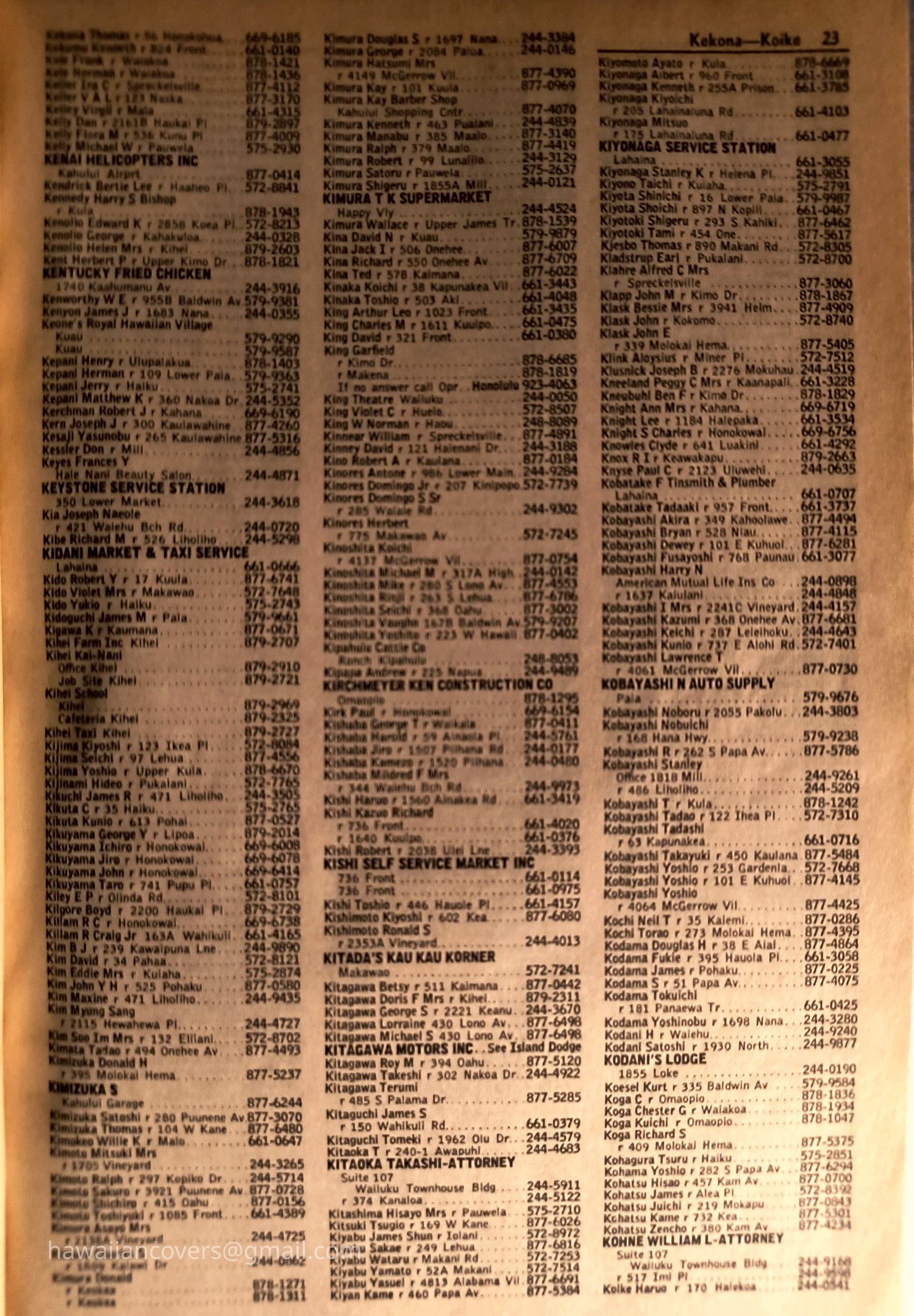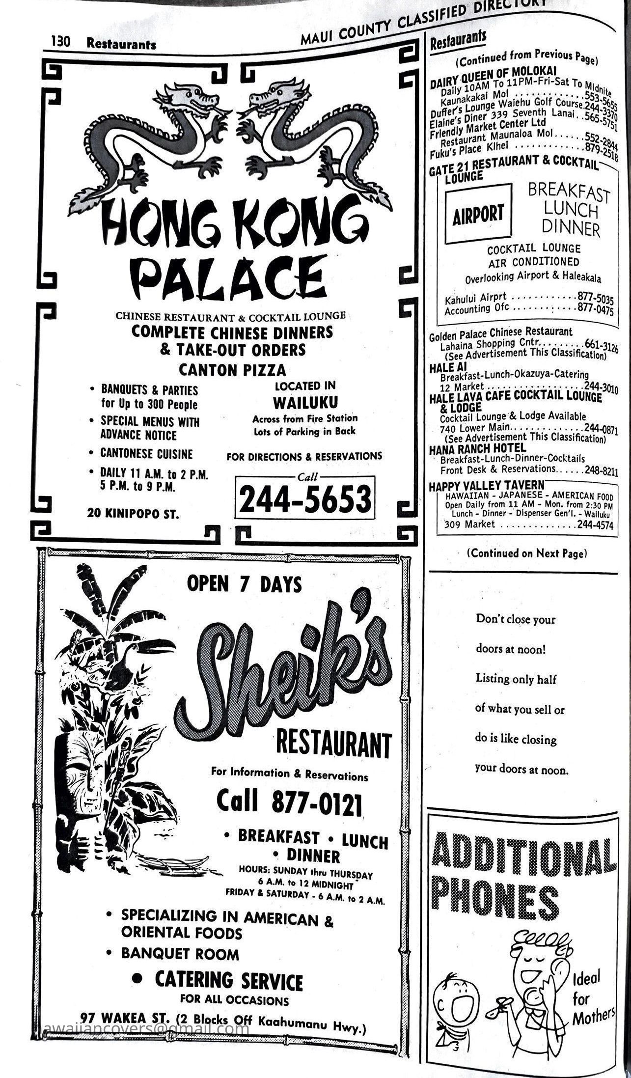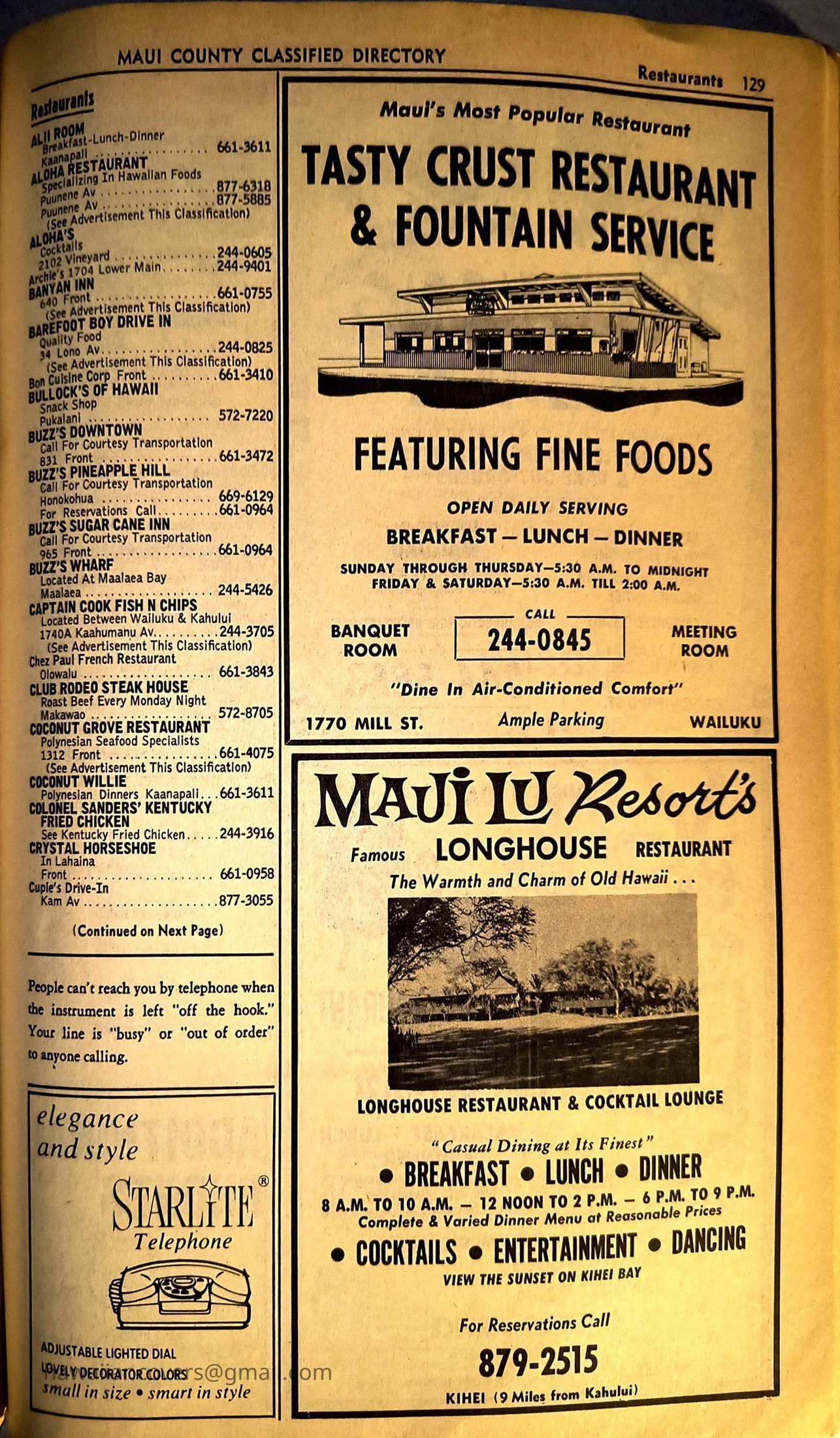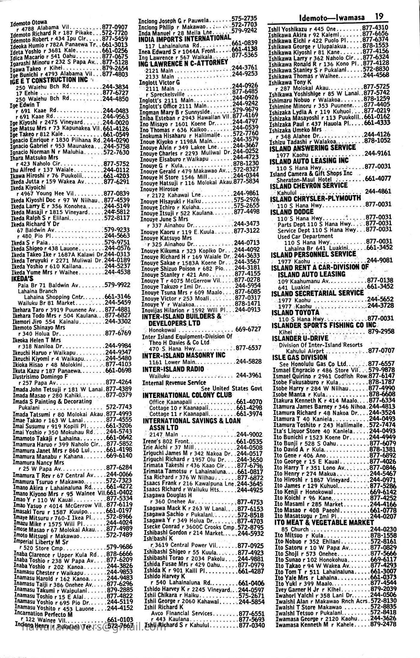 Maui Telephone Directory Published July 1, 1970