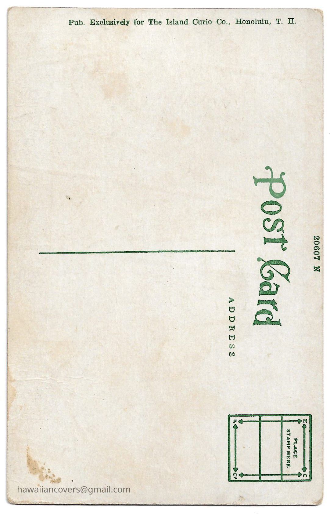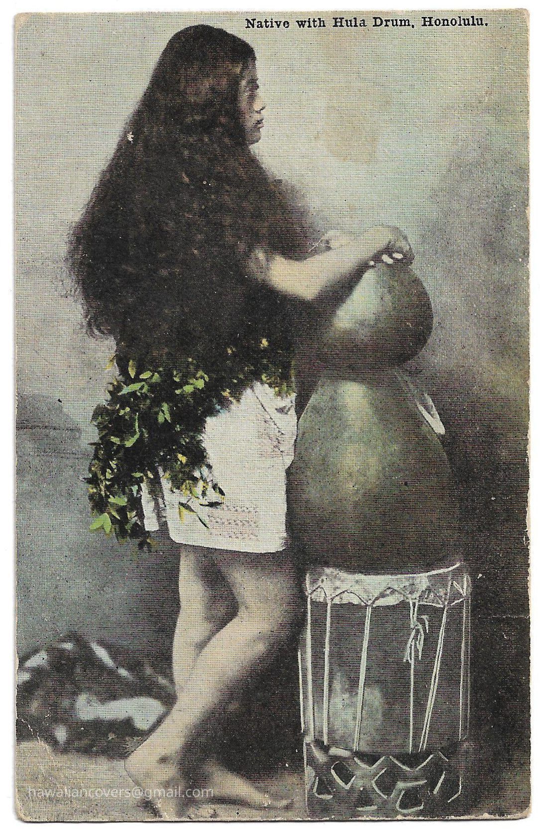 Inscribed "Native with Hula Drum, Honolulu" Pub. Exclusively for The Island Curio Co., Honolulu, T. H.