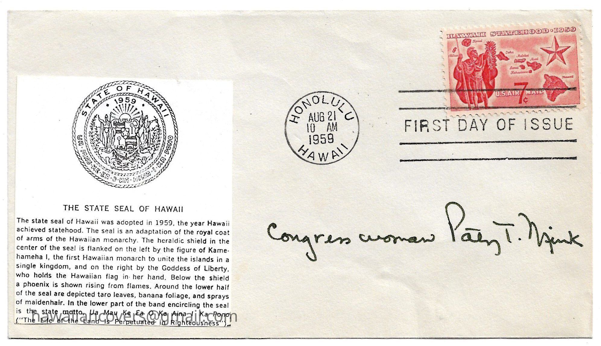 Hawaii Statehood Cachet First Day of Issue Aug 21, 1959