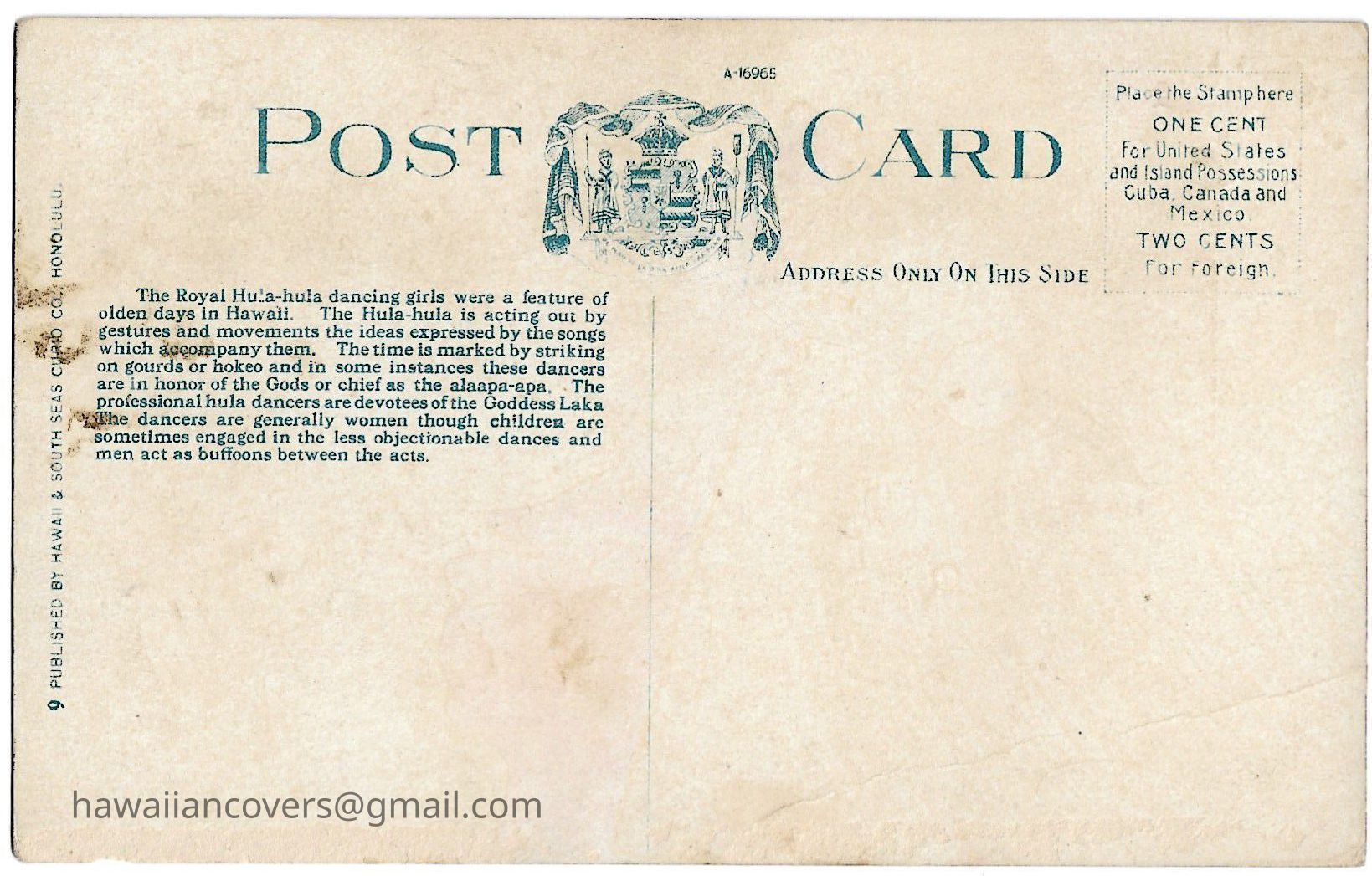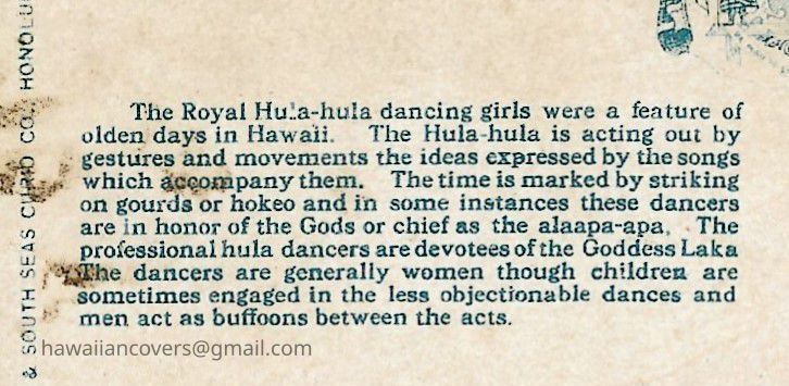Inscribed "Royal Hula-Hula Dancers, Hawaii" Published by Hawaii & South Seas Curio Co., Honolulu