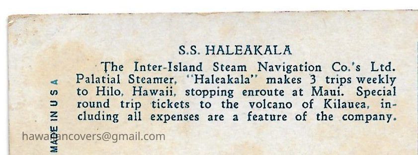 Haleakala was a steam cargo ship built in 1919 by Long Beach Shipbuilding Company of Long Beach for the United States Shipping Board (USSB) as part of the wartime shipbuilding program of the Emergency Fleet Corporation (EFC) to restore the nation's Merchant Marine. The vessel was first employed in the Pacific trade before being briefly laid up. She was reactivated in 1922 and entered the South American trade connecting the ports of Argentina and Brazil with a variety of ports in the Northeastern United States. In September 1926 while on one of her regular trips, she disappeared without a trace, possibly foundering in the hurricane with the loss of all hands.Created By