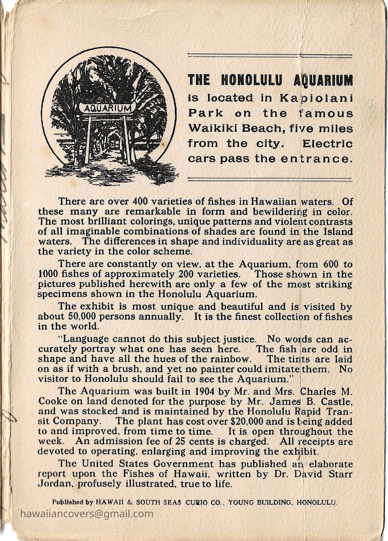 The Honolulu Aquarium Pictures of Fish 1916Description