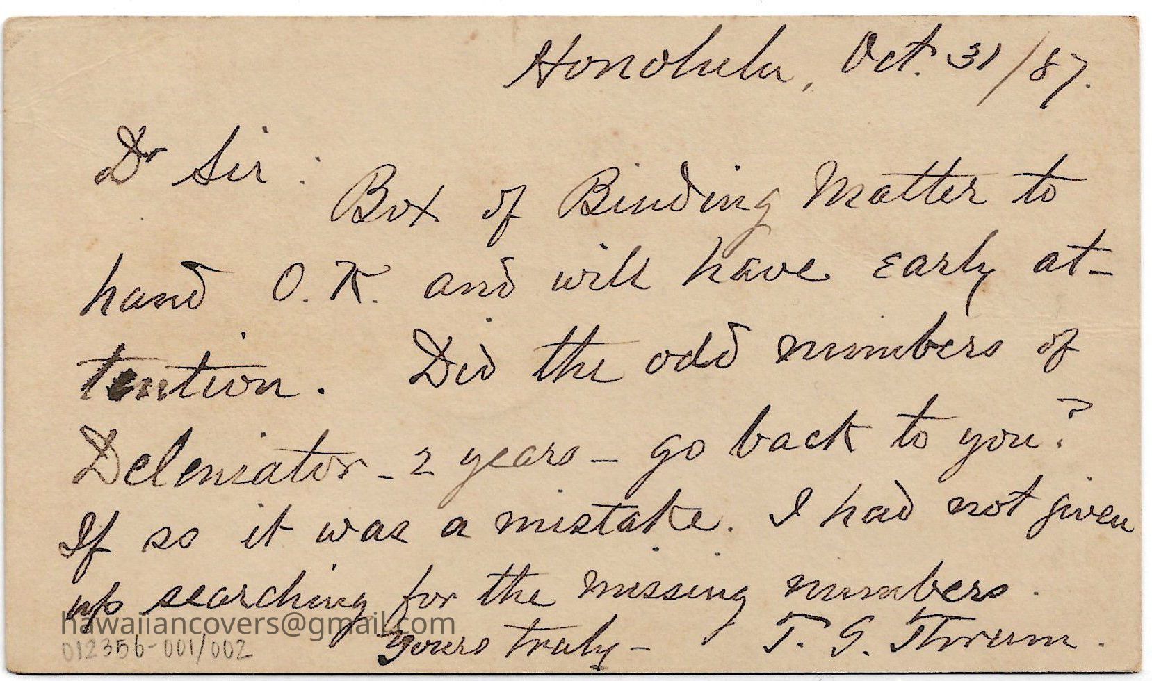 Thomas George Thrum (T. G. Thrum)Description