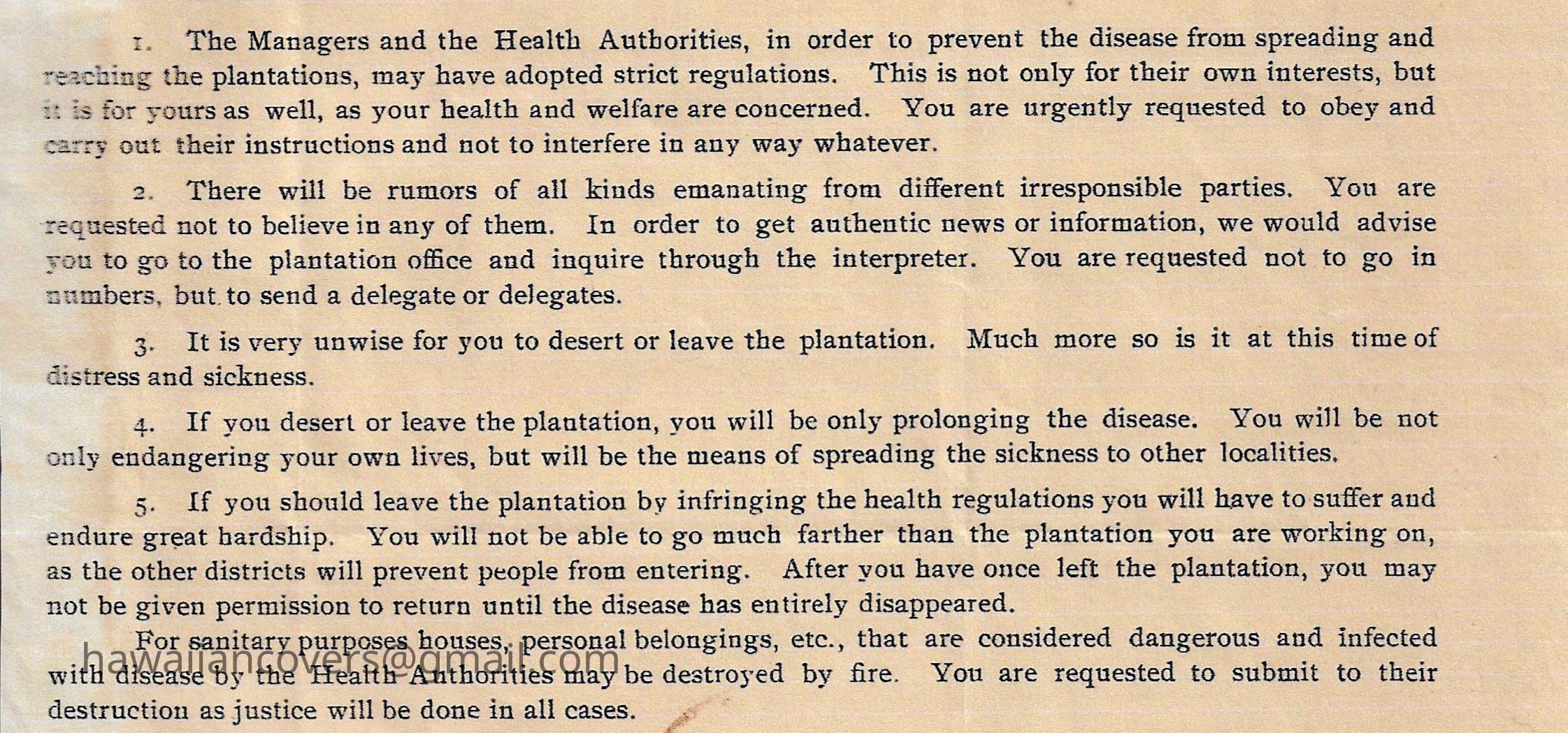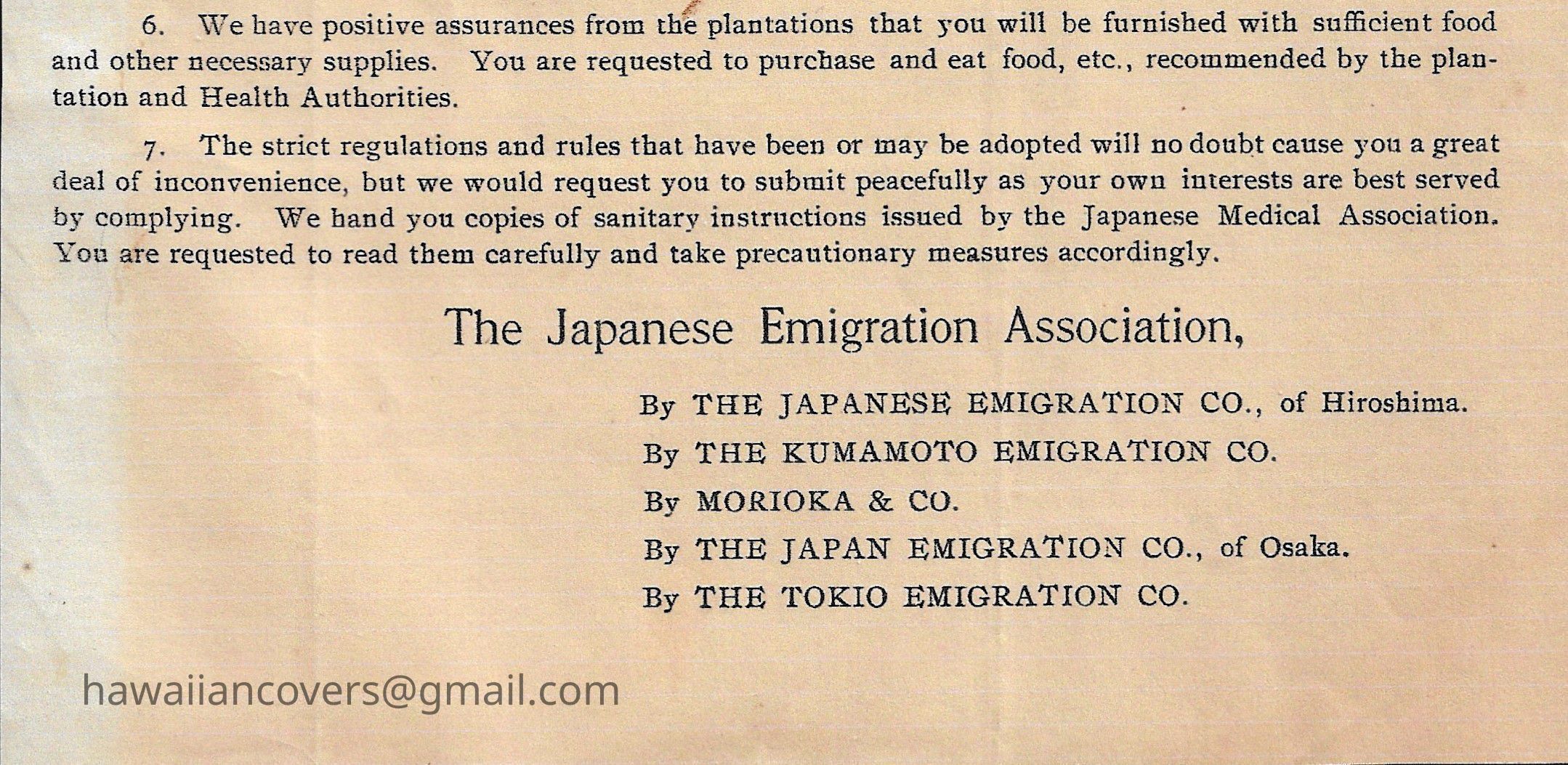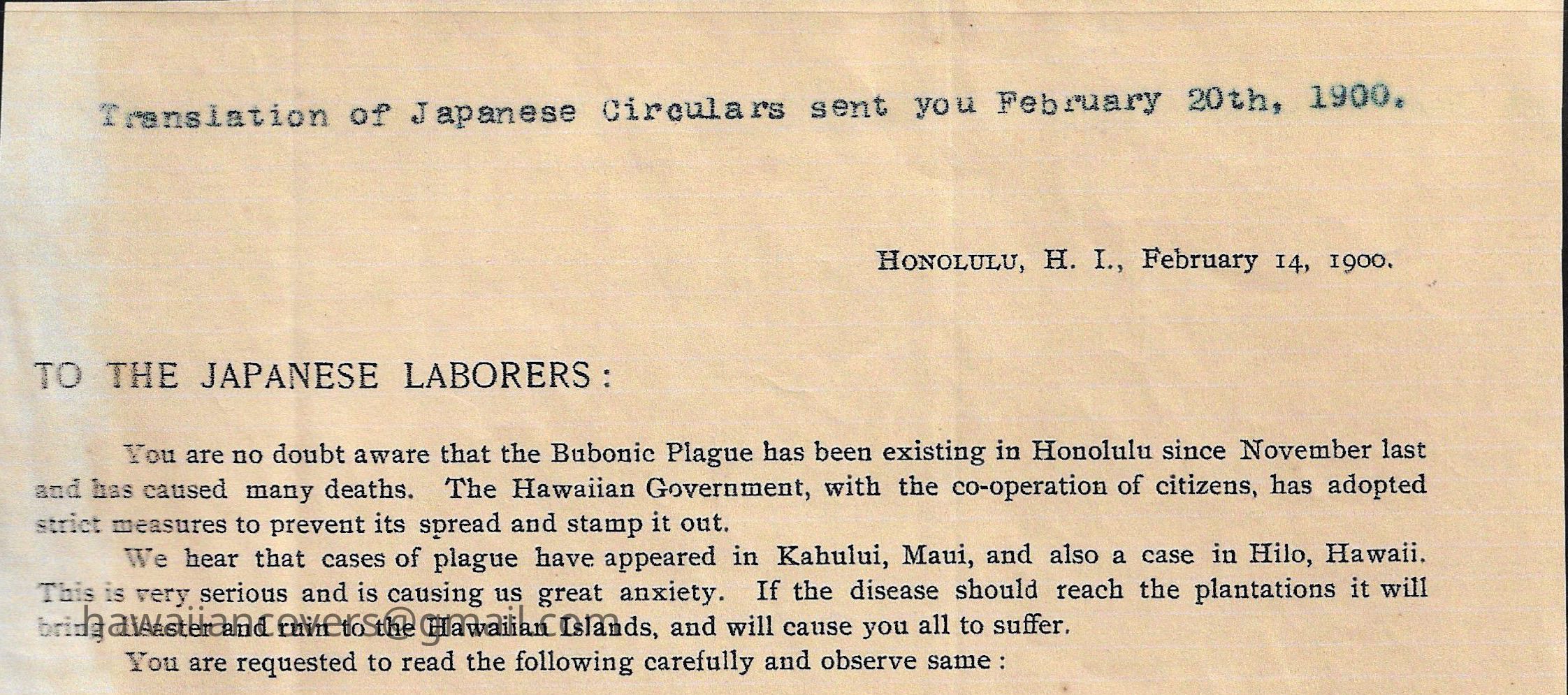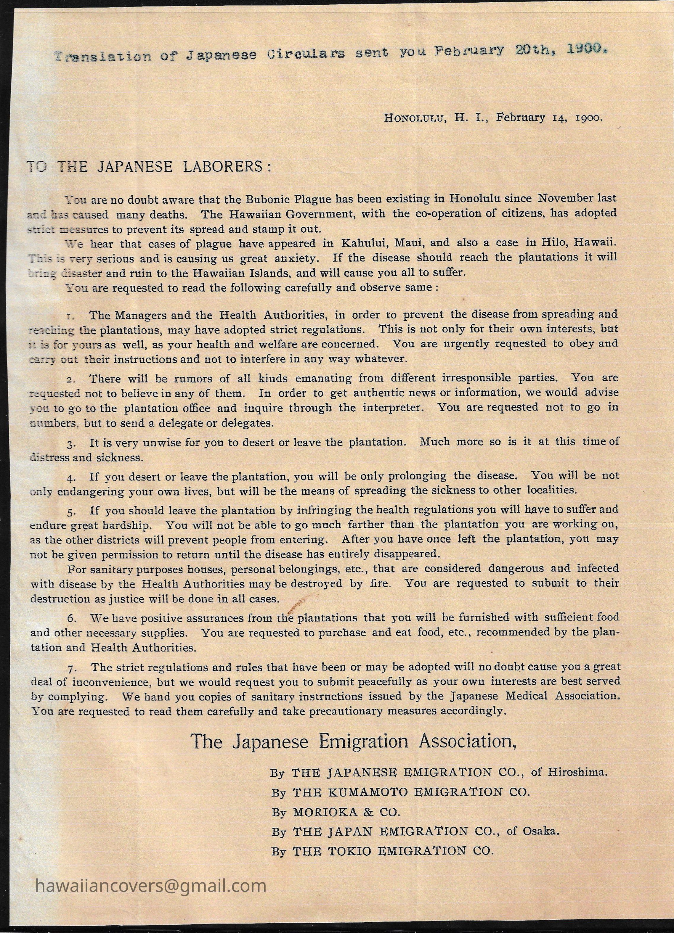 TO THE JAPANESE LABORERS (Bubonic Plague) 1900