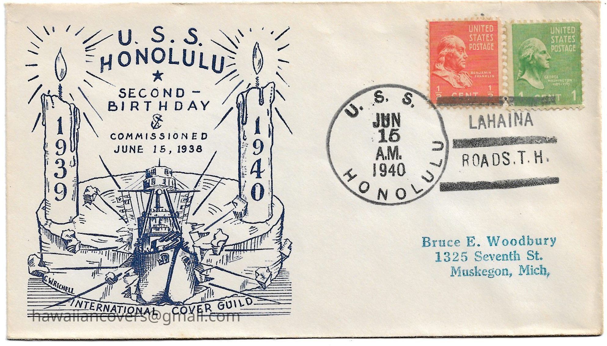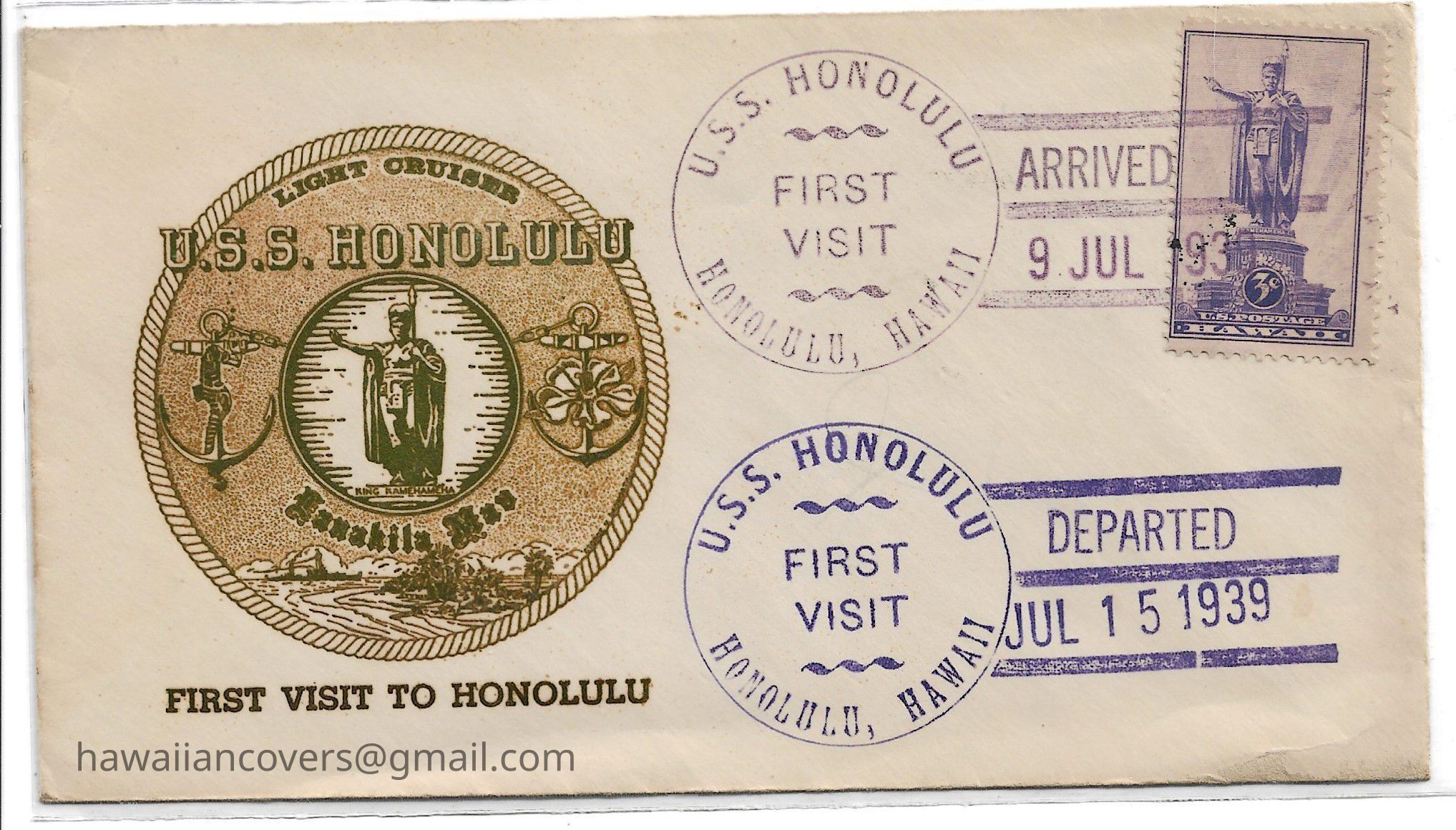 U.S.S. Honolulu First Visit to Honolulu CachetDescription