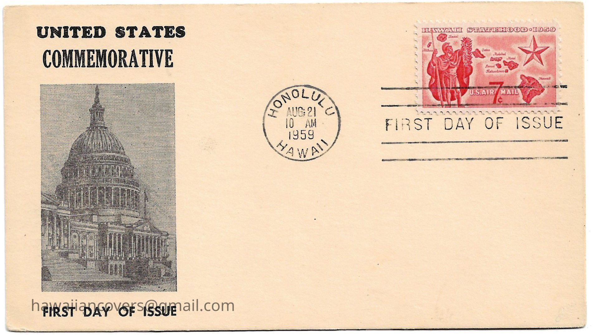 United States Commemorative Hawaii Statehood 1959Description