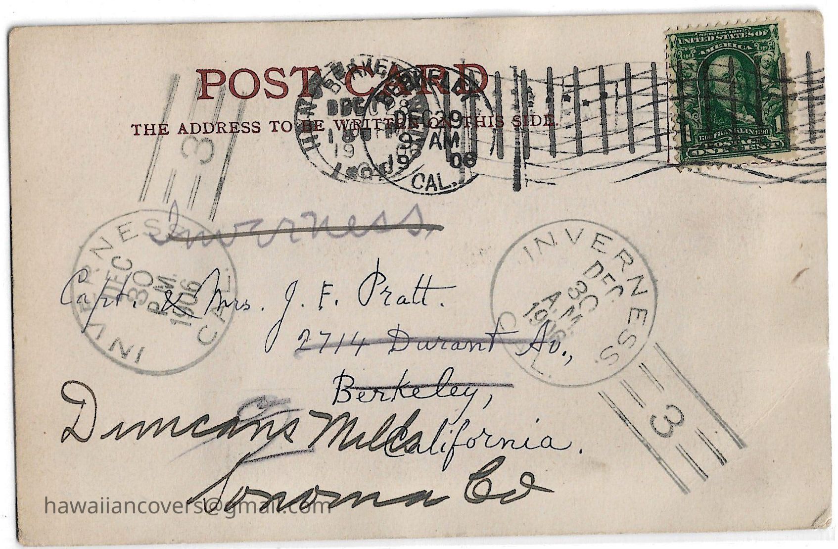 Signed Postcard by W. D. Alexander - Dec 1906 addressed to J. F. Pratt