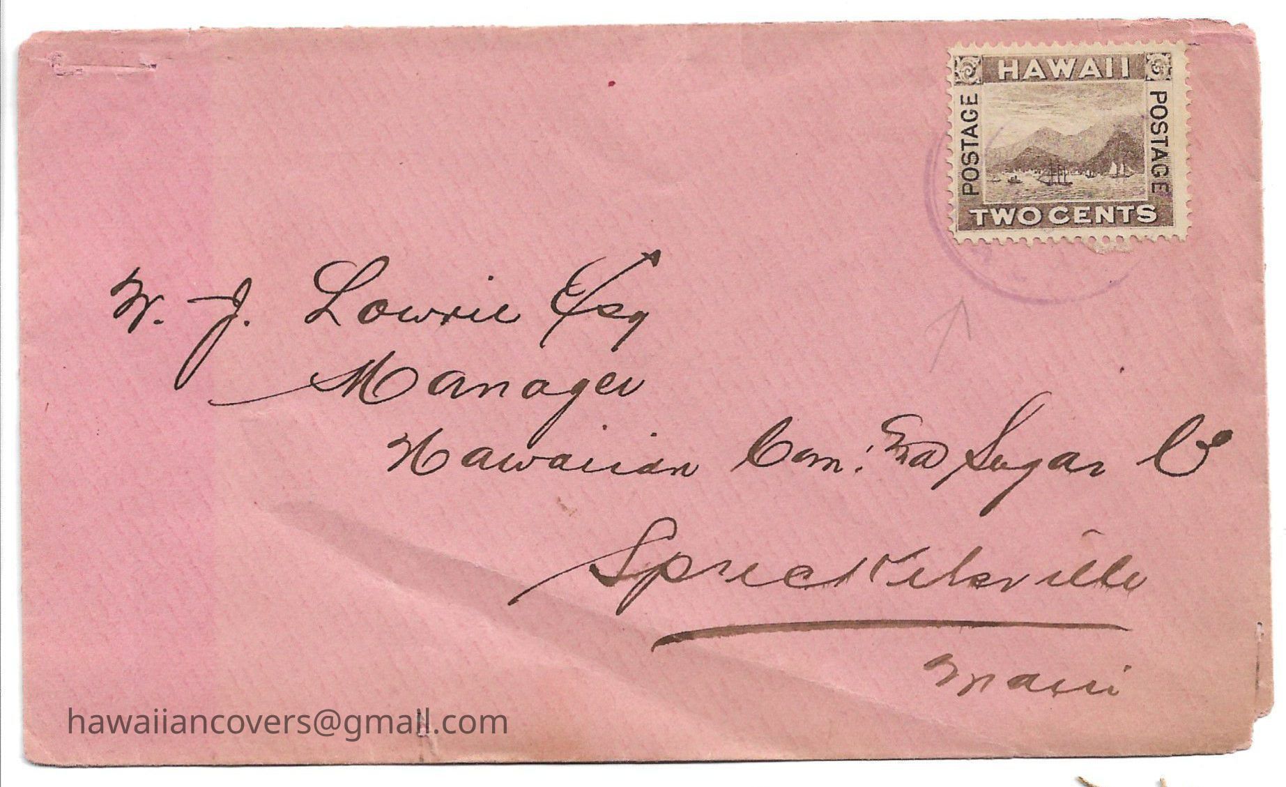 Lot of 3 covers, addressed to W.J. Lowrie, Manager, Hawaiian Commercial & Sugar Co., Spreckelsville, MauiCreated By