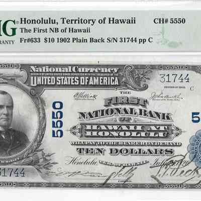 The First National Bank of Hawaii $10 Plain Back