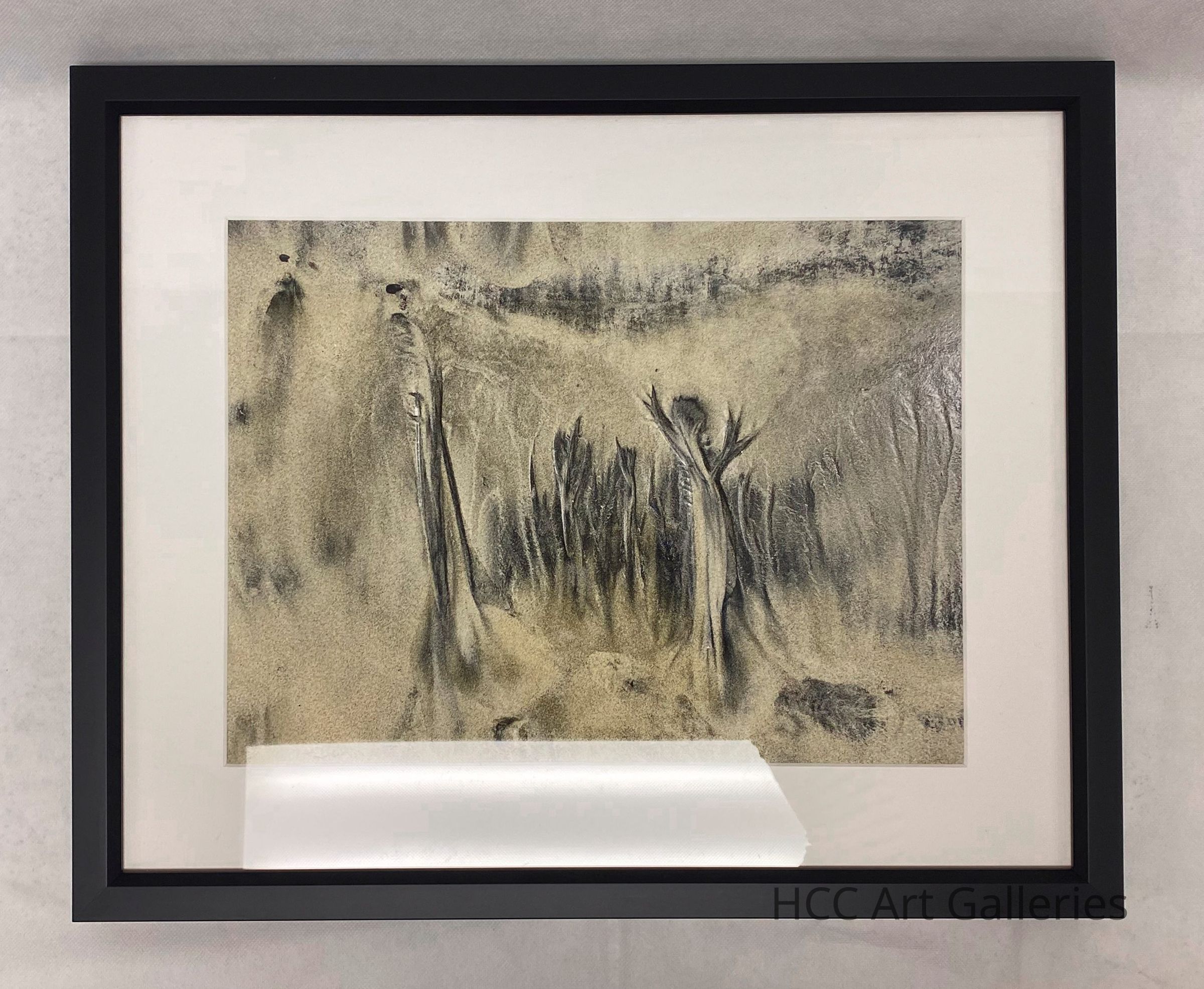 A framed photograph of patterns in beach sand left by waves. The second in a series of three.