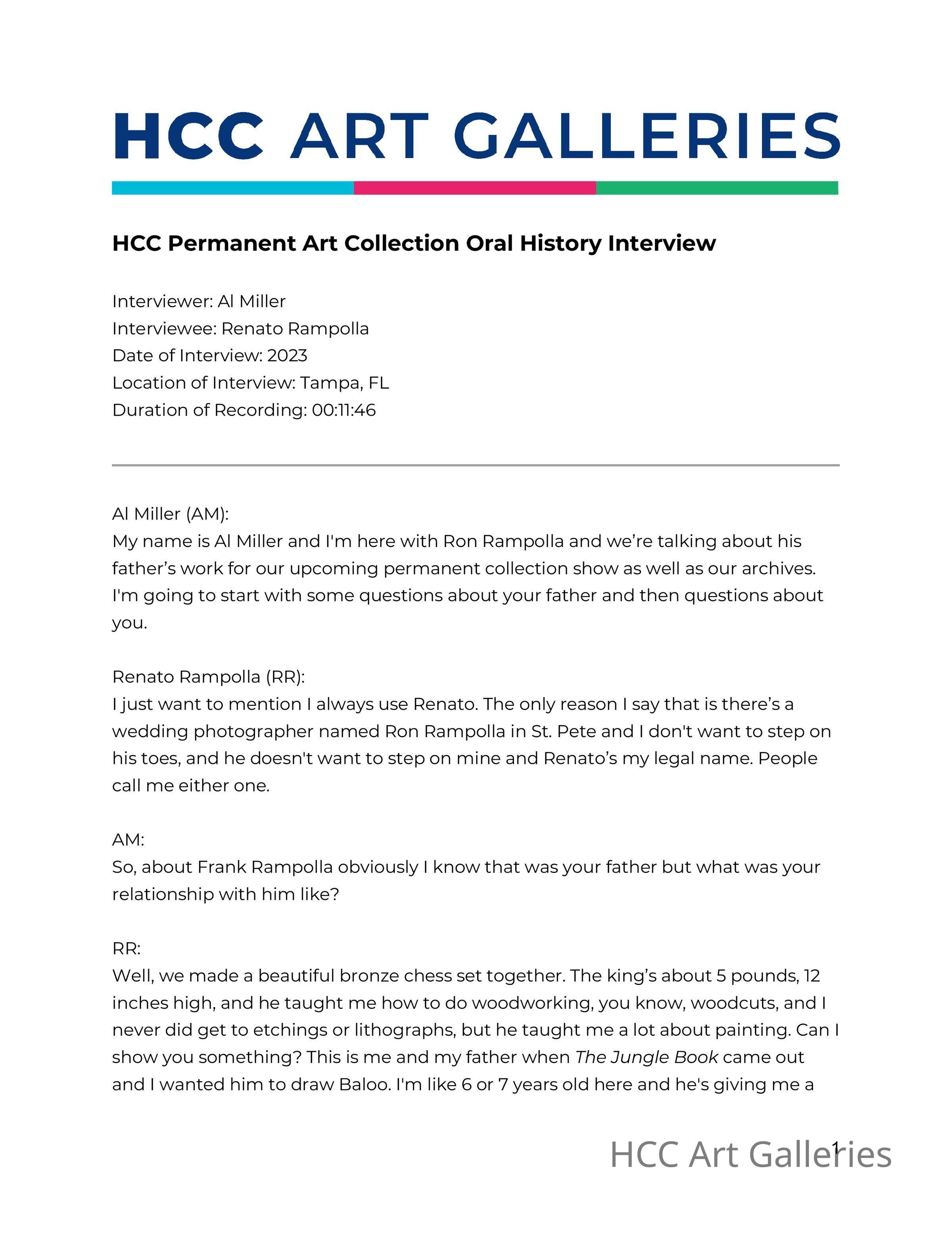 Renato Rampola speaks about his father's art.