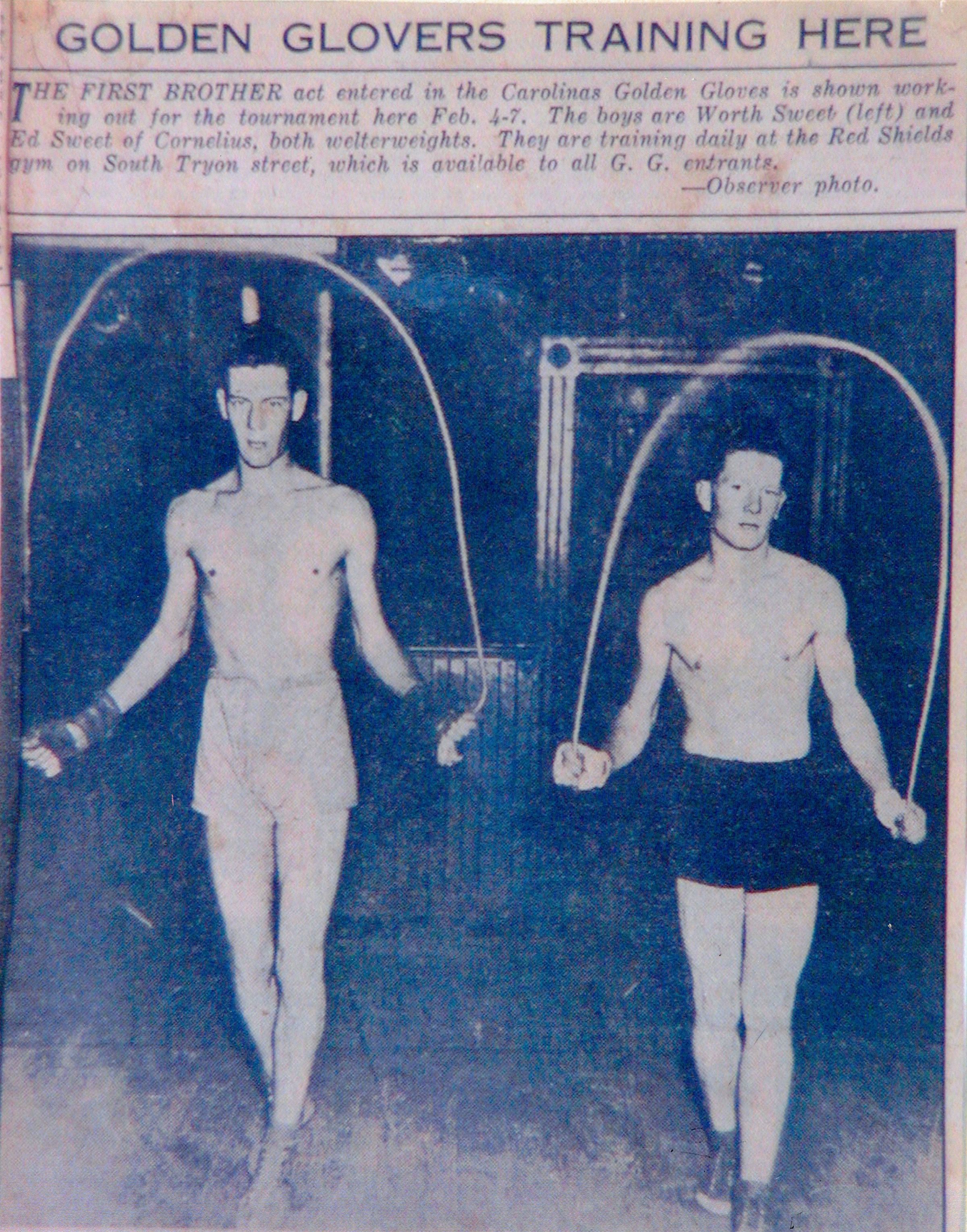 Ed Sweet won the welterweight division of the Carolinas Golden Gloves in Charlotte in 1936, and went on to win the Carolinas title again in 1938 and 1939.