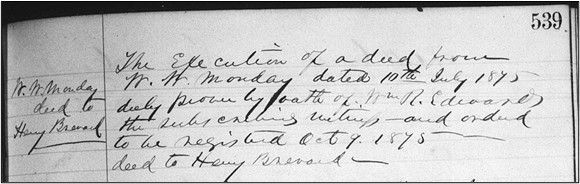 That same year, he also acquired an additional seven-eighths of an acre from William W. Monday, a transaction that was later confirmed through court-ordered registration.