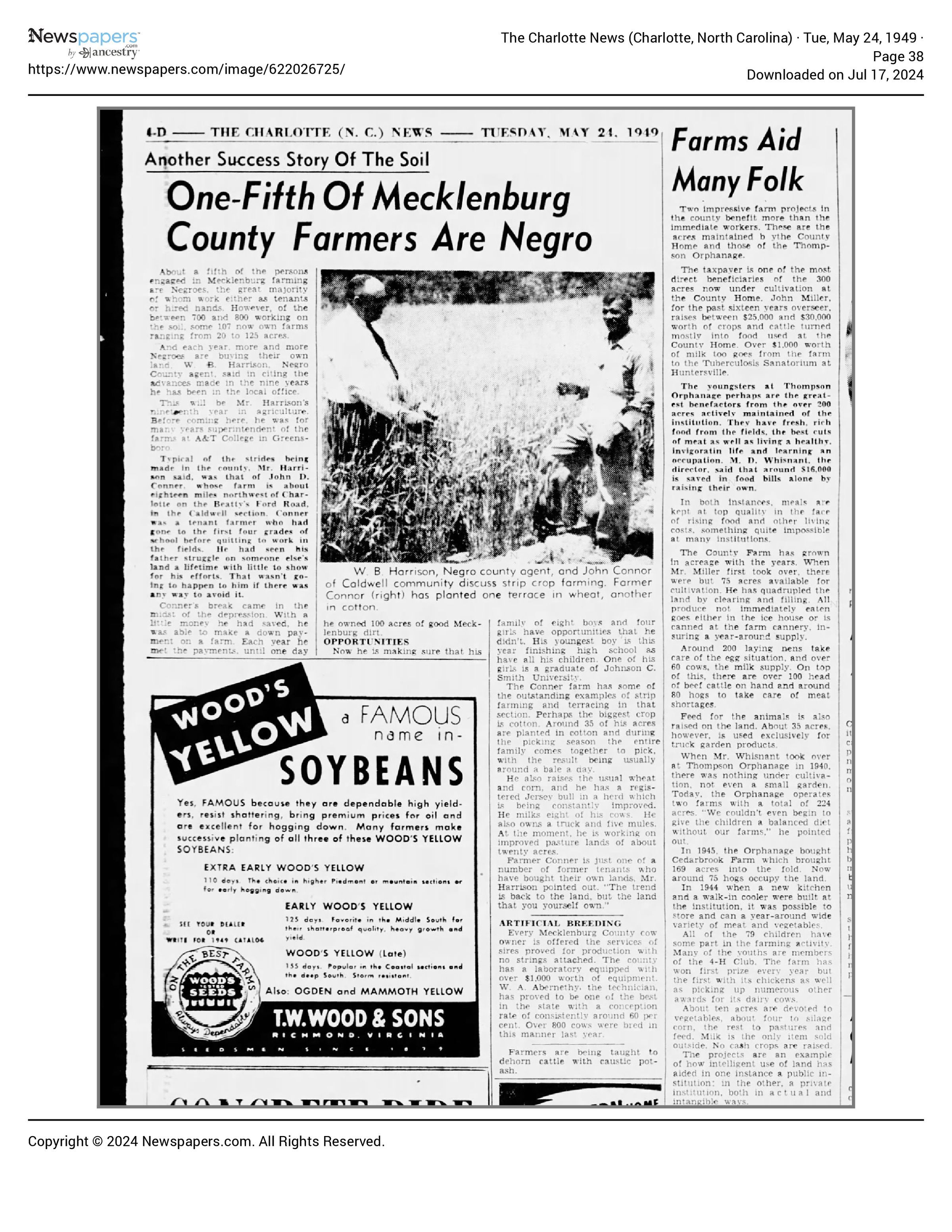 One Fifth of County Farmers are Black 1949