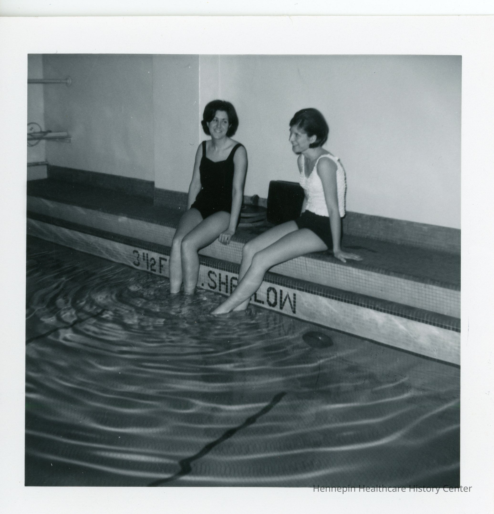 These nursing students from The Swedish Hospital School of nursing classes of 1967 and 1968 took a break to soak their feet in the indoor dormitory pool. The Swedish Hospital merged with St. Barnabas hospital in 1971 to become Metropolitan Medical Center. That institution closed in 1991. Hennepin Healthcare now occupies the buildings.