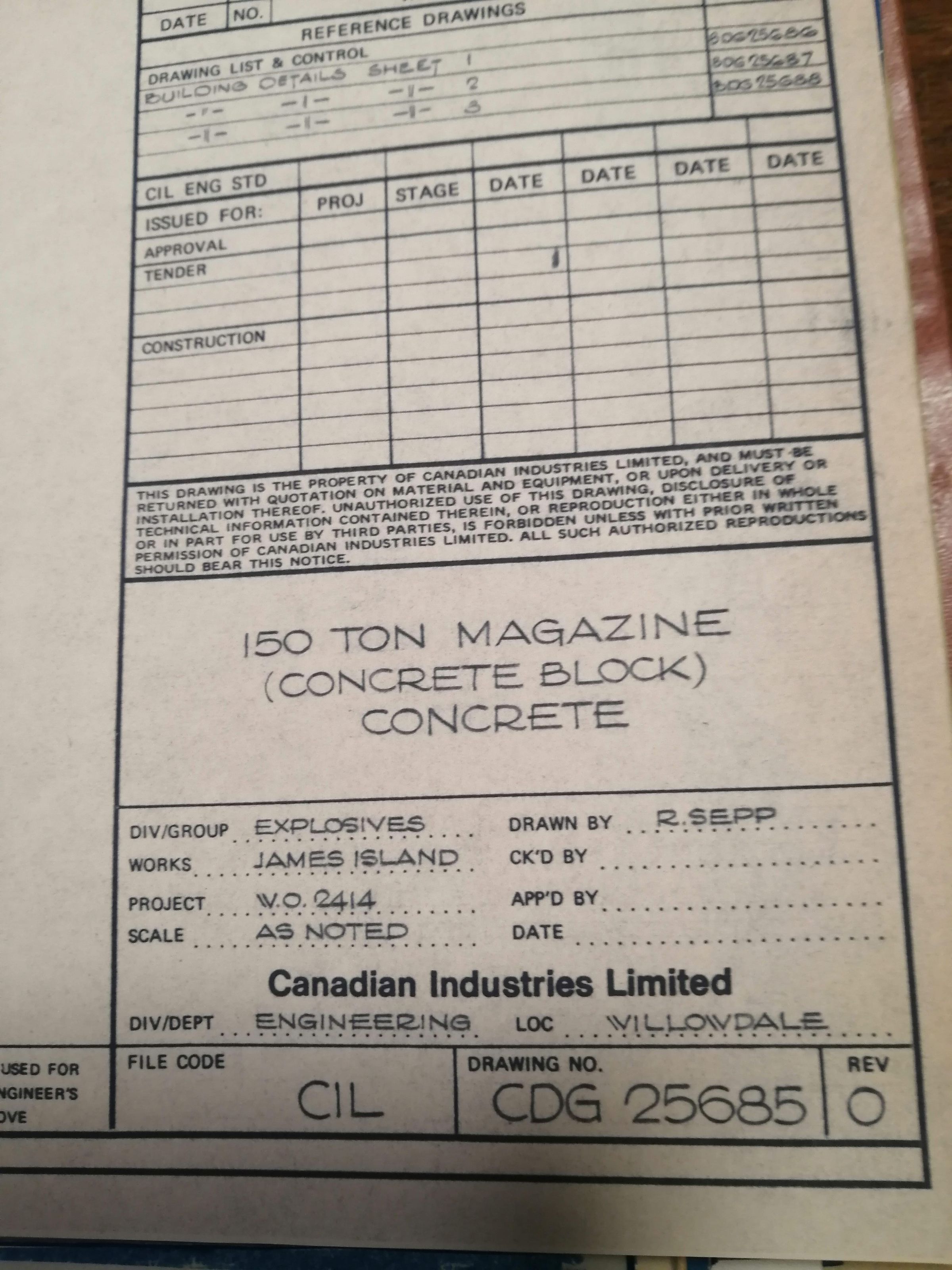 150 ton magazine (concrete block) concrete. James Island. Technical drawing.