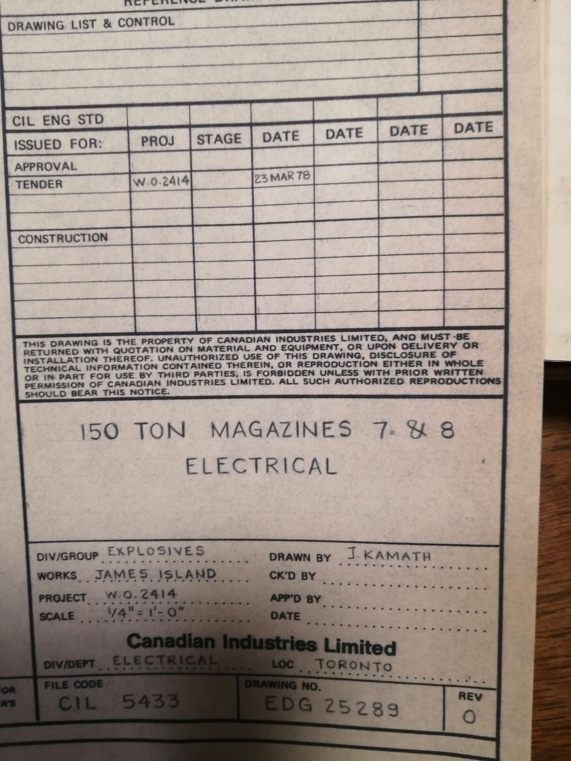 150 ton magazines 7 & 8 electrical. James Island. Technical drawing.
