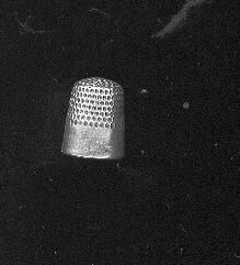 Tiny silver thimble . Wide plain border then knurling to and over top. No marks.