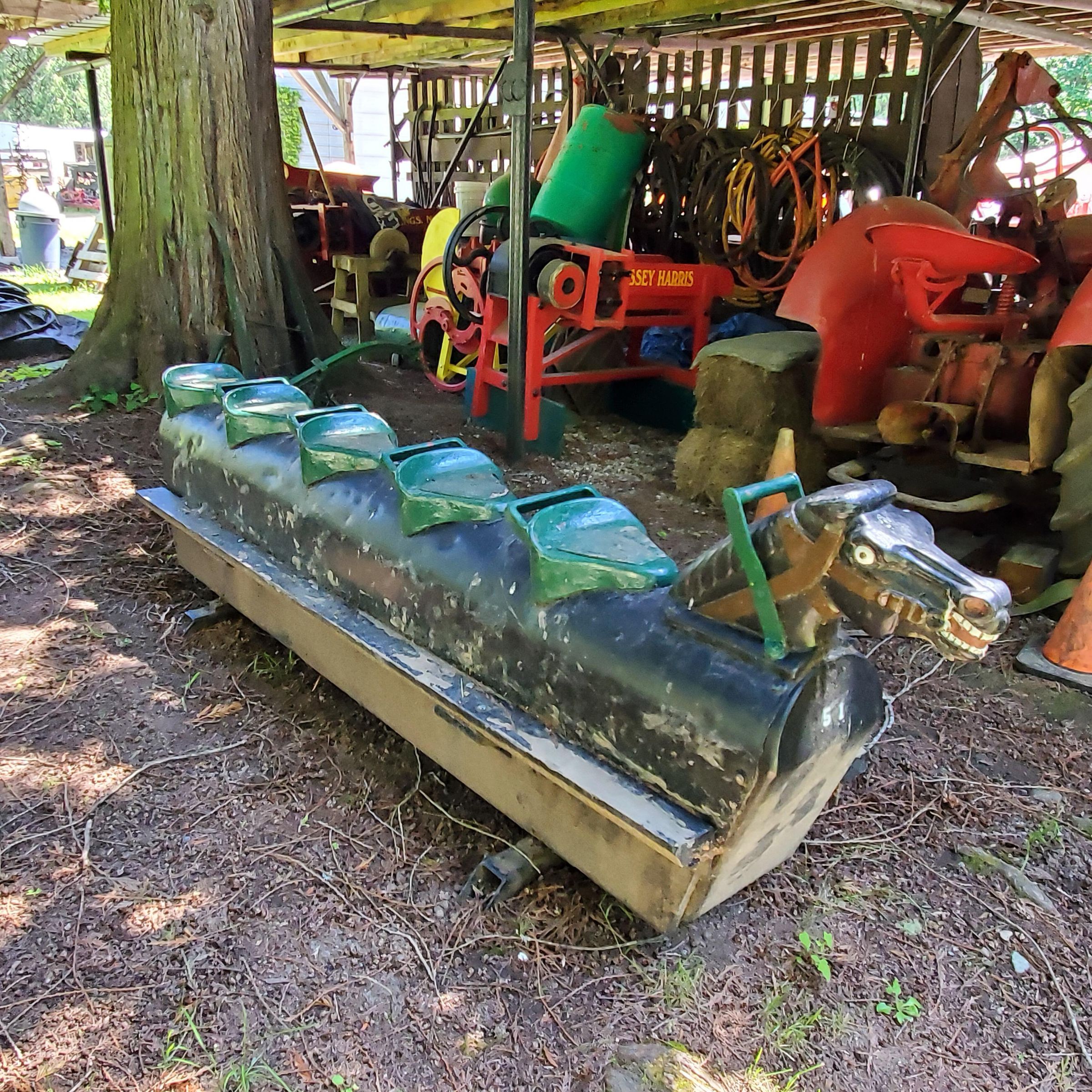 Classic 1950's public playground 5 seater cast iron body and head rocking horse. Measures; body height 24 inches, width 12 inches, length 93 inches. This artifact is the actual horse removed from Beacon Hill play ground area