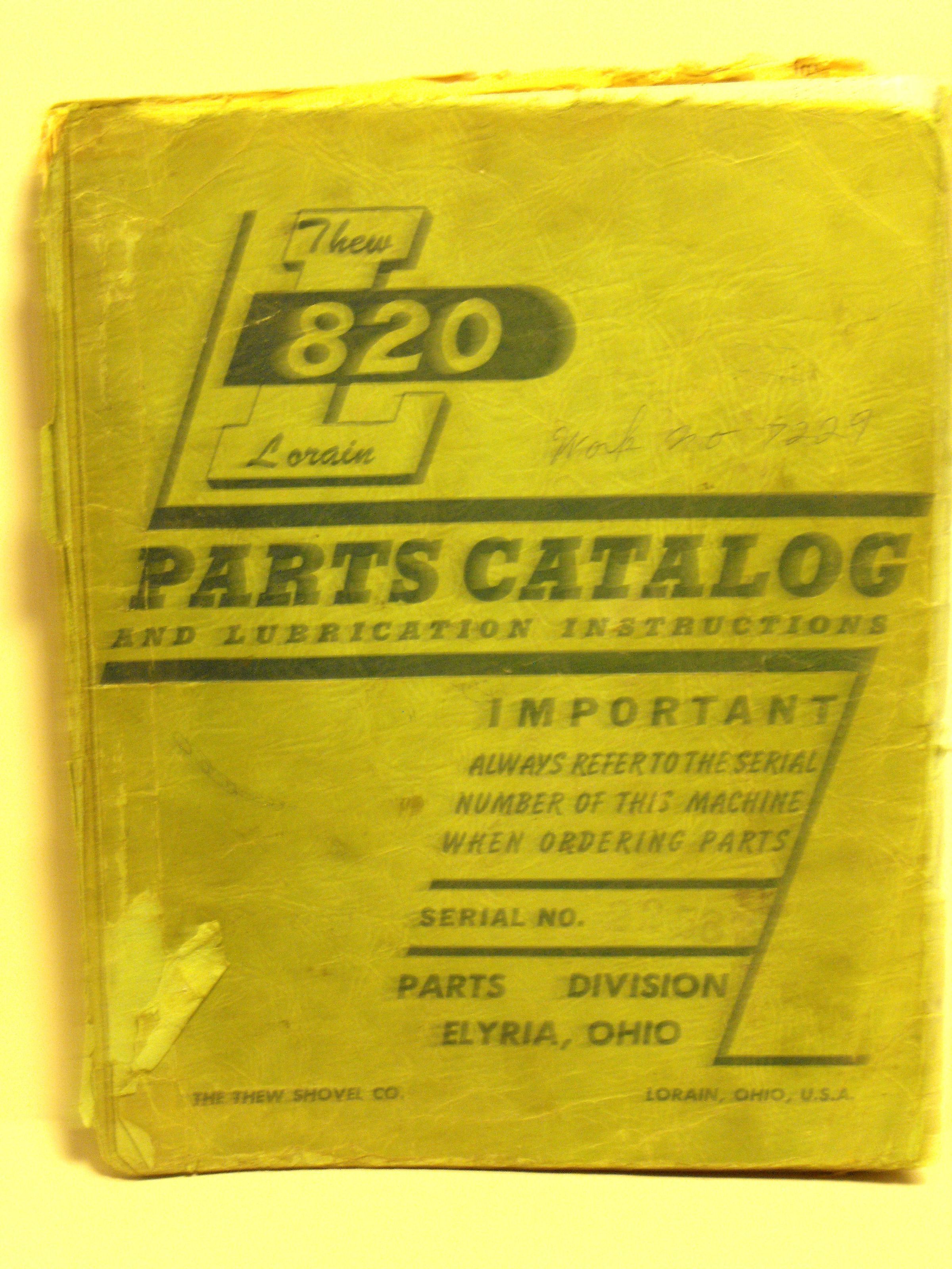 820 Lorain parts catalog and lubrication instructions.
