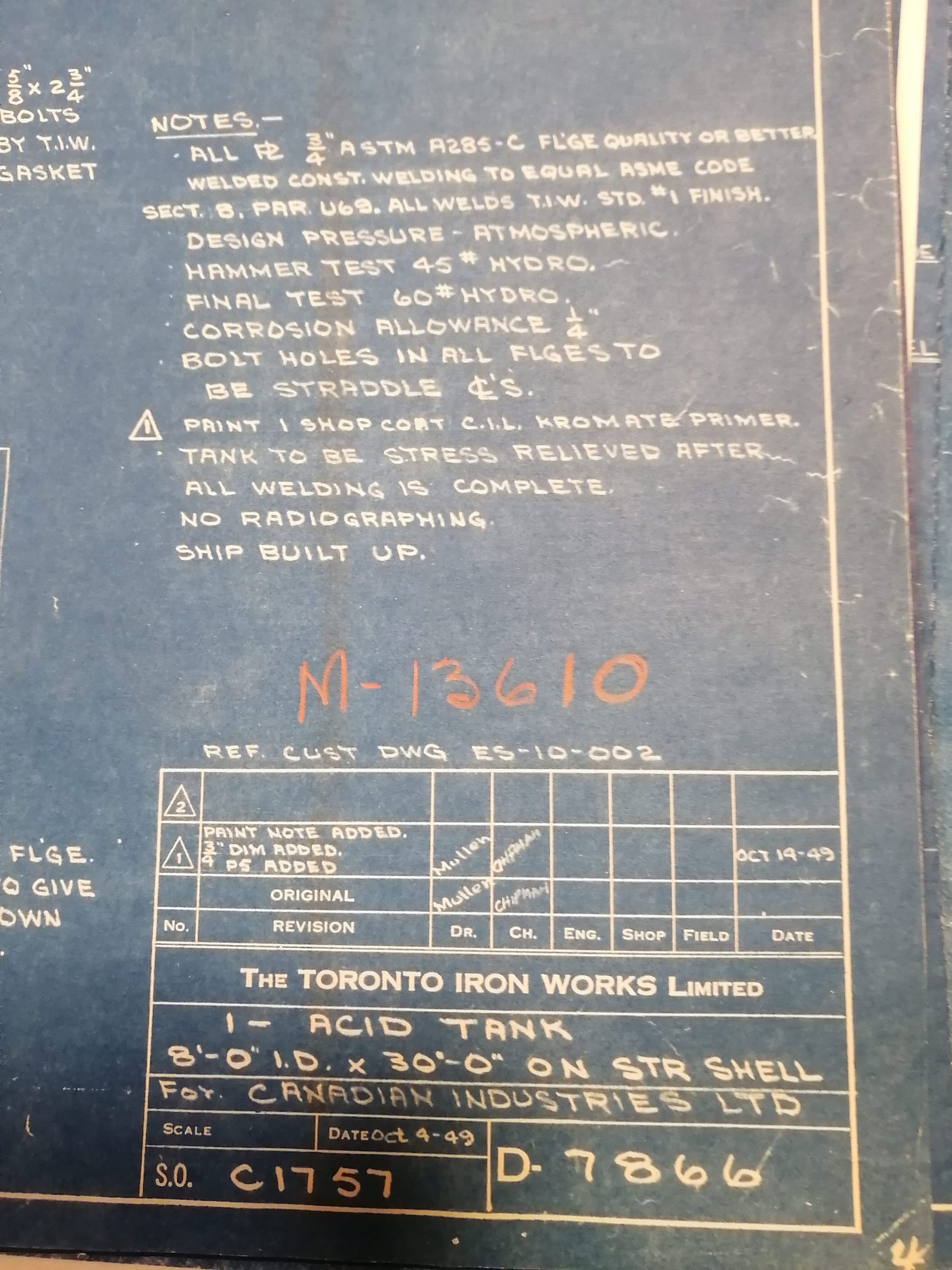 Acid tank. The Toronto Iron Works Limited. Technical drawing