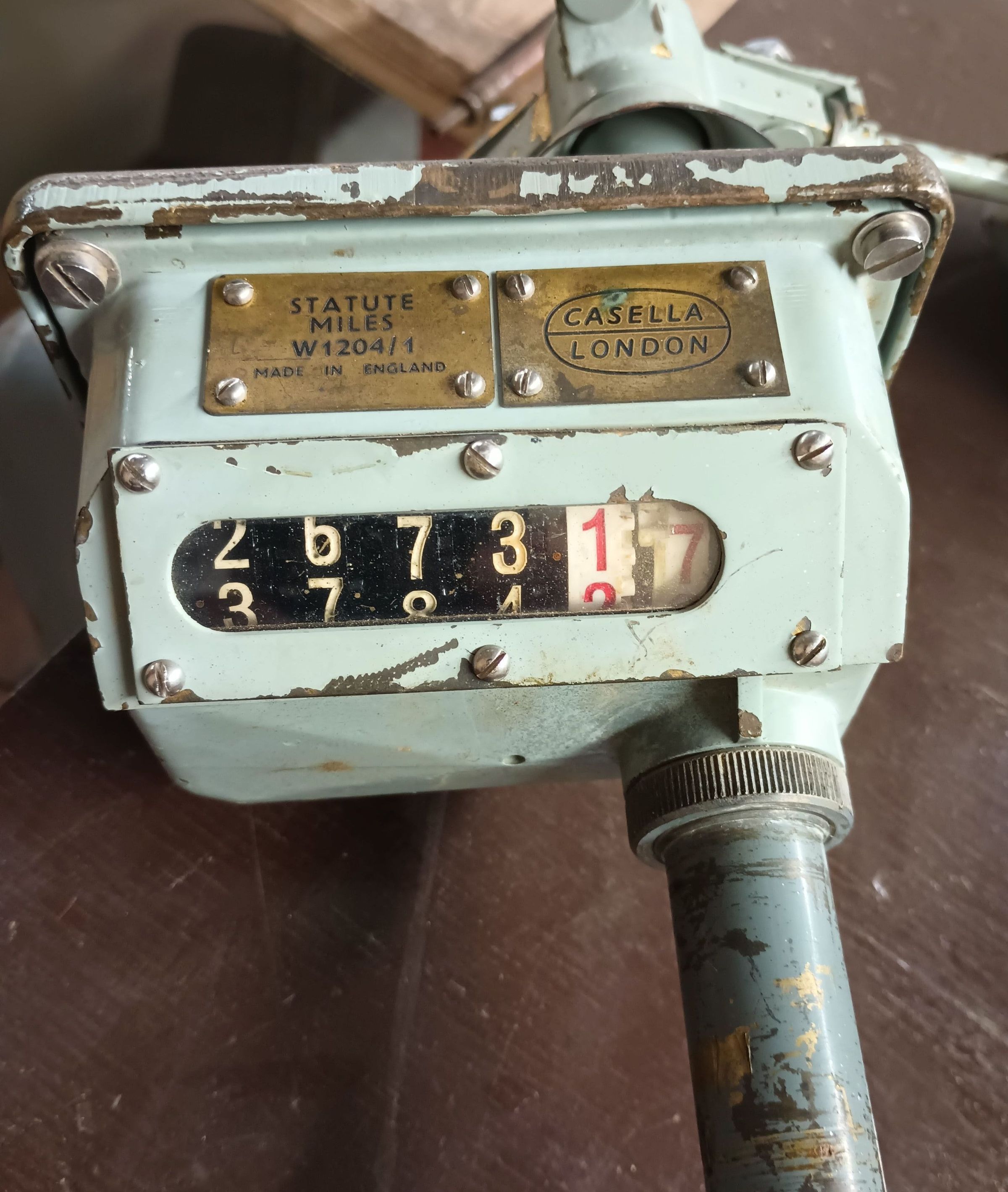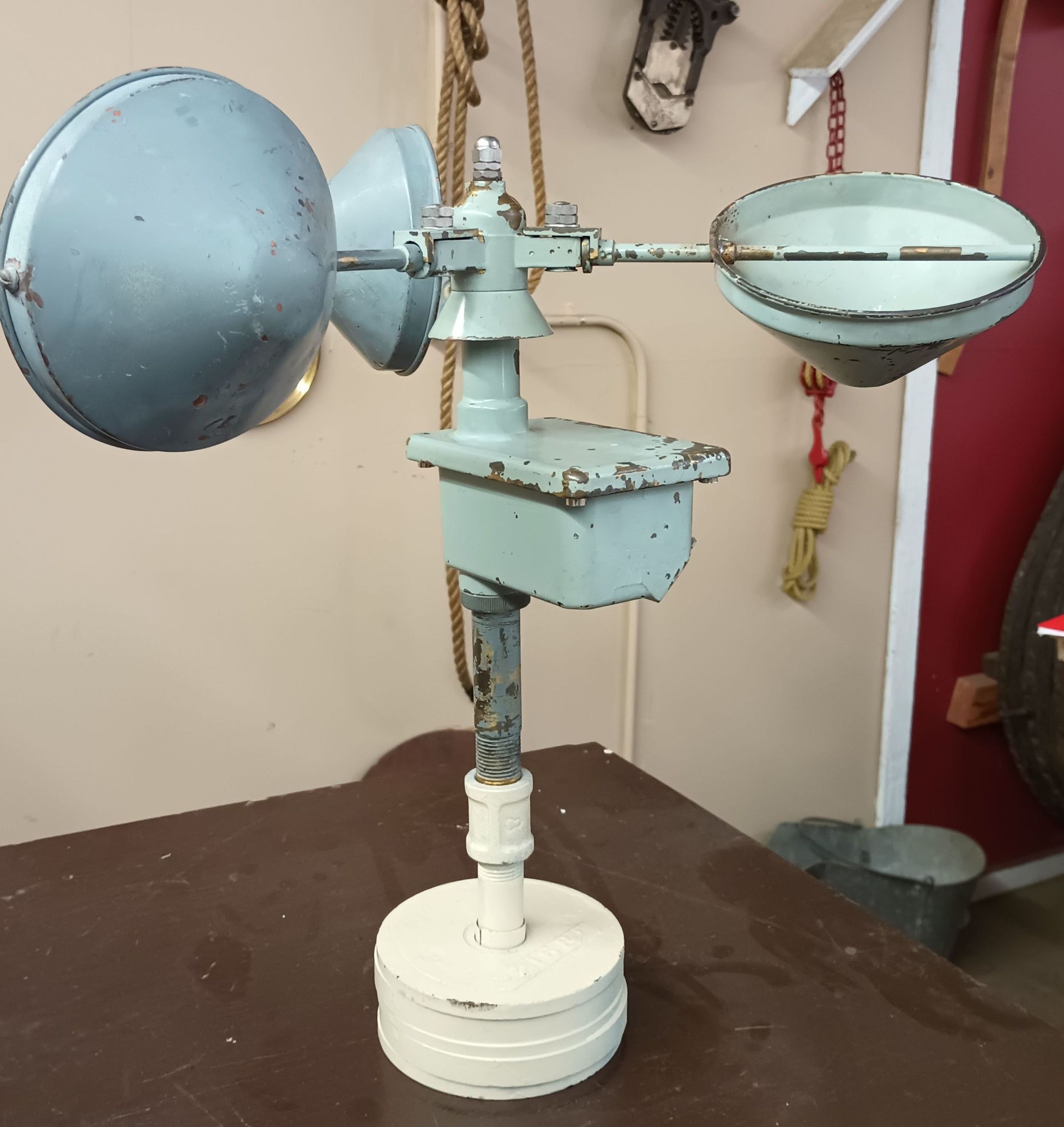 3 cup anemometer manufactured by Casella, London. This wind gauge is 42 cm high, with a painted cast iron base,