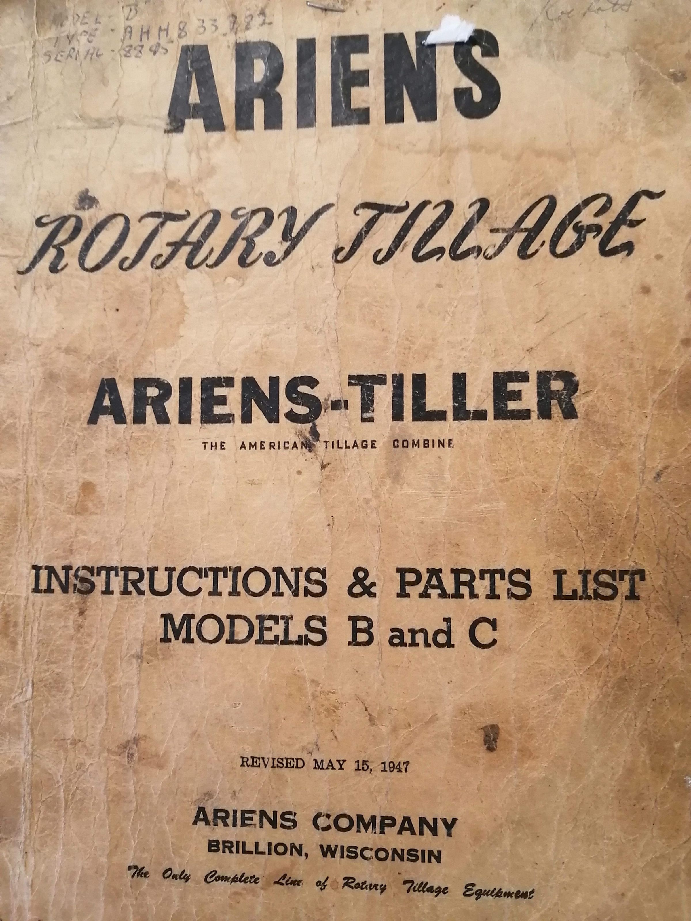 Ariens rotary tillage. Instructions and parts list Models B and C