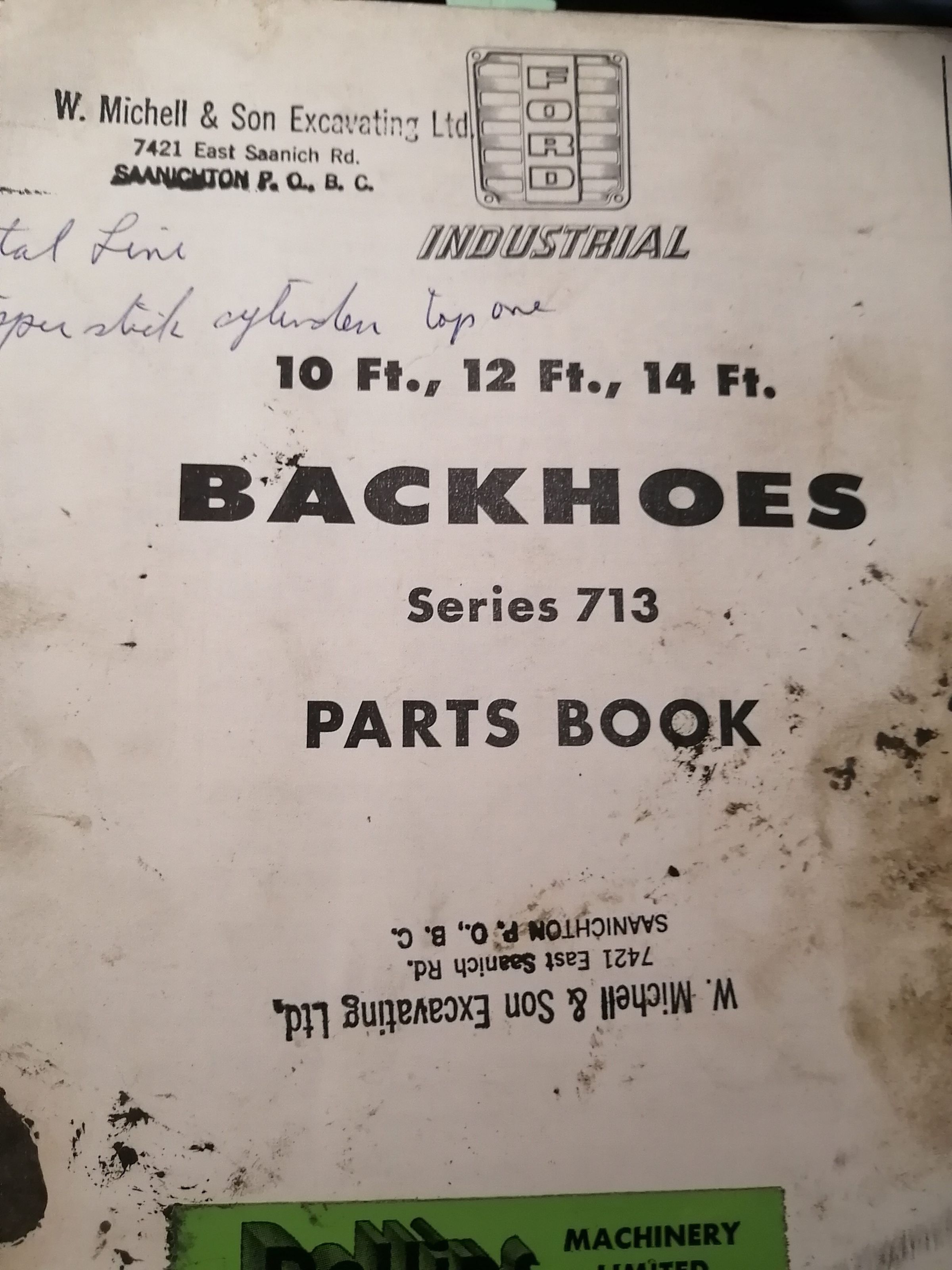 Backhoe. 10 ft., 12 ft., 14 ft. Series 713. Parts book