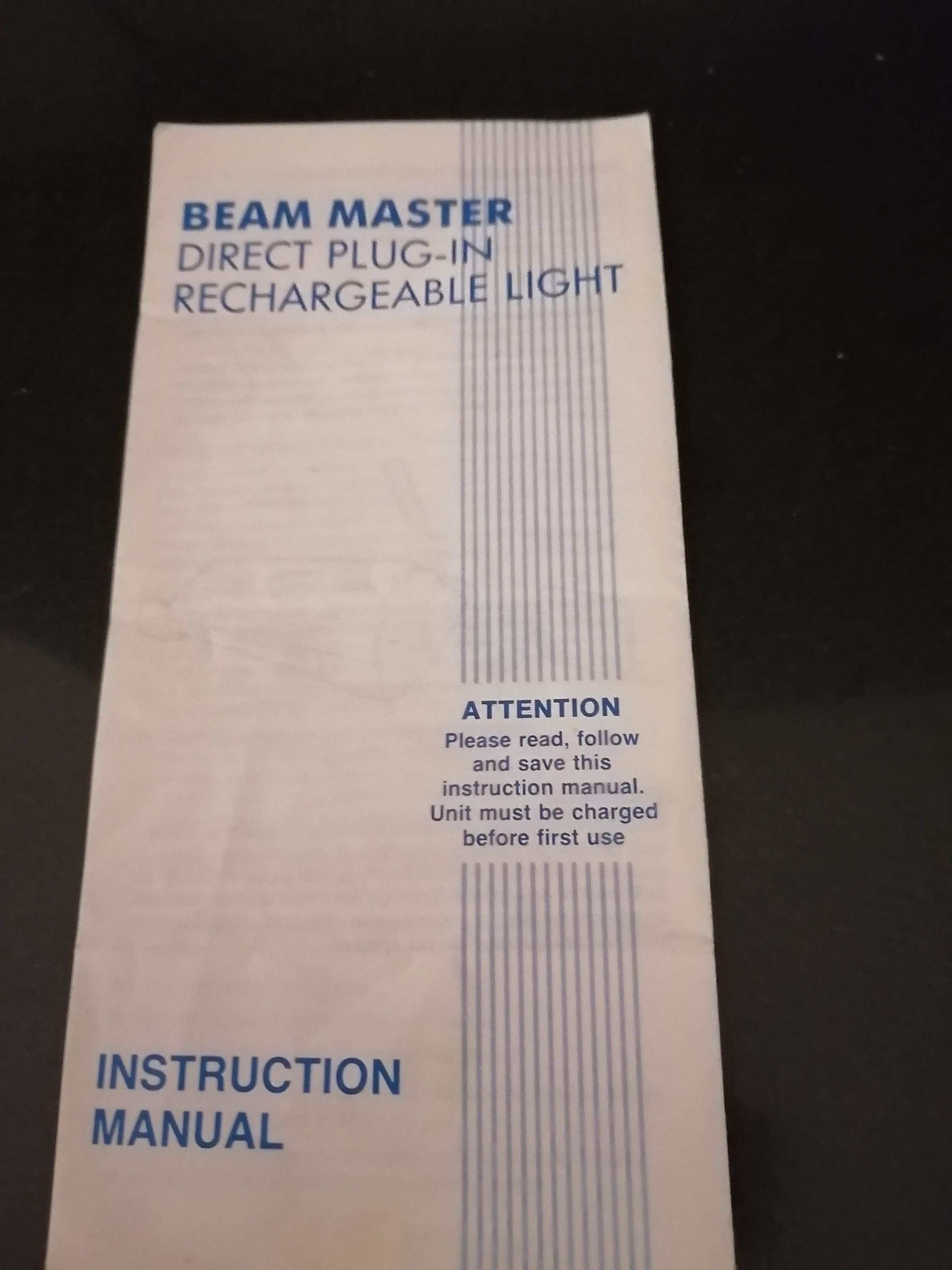 Beam master. Direct plug-in rechargeable light
